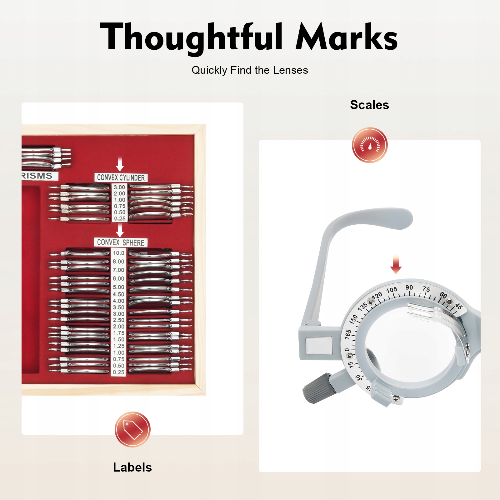 ✅✅Łatwo Wyróżnione Soczewki: Każdy uchwyt obiektywu jest wygrawerowany oznaczeniami, a moc obiektywu i typ obiektywu są również nadrukowane na tacy. Możesz szybko znaleźć potrzebne soczewki.