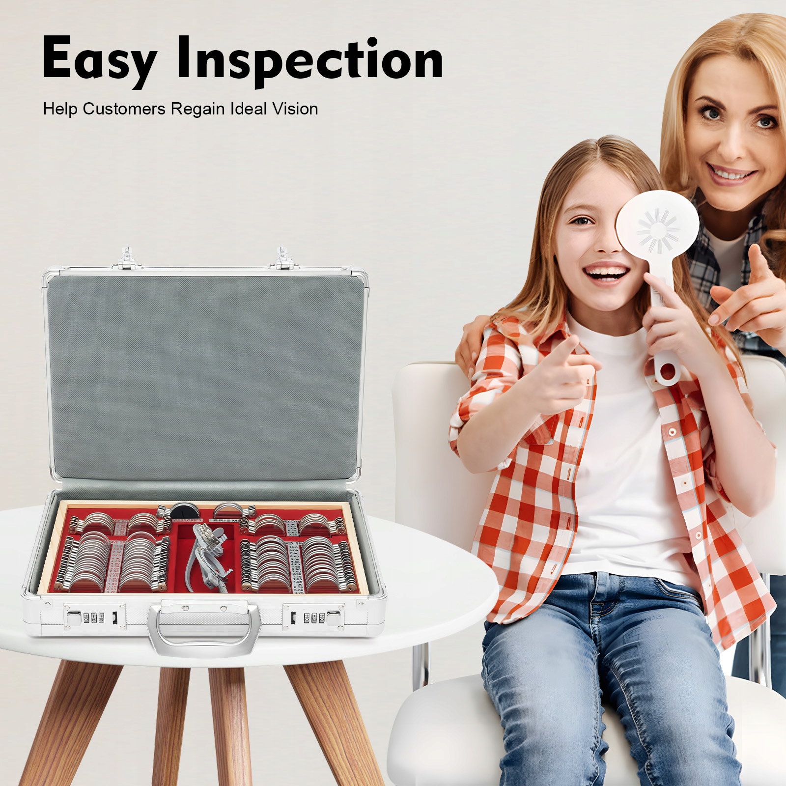 ◾Mamy starannie dobrany zestaw soczewek próbnych, skrupulatnie zaprojektowanych, aby ułatwić precyzyjne i skrupulatne oceny optometryczne. Ten kompleksowy zestaw soczewek jest ważnym narzędziem w optometrii, pozwalając nam głęboko zrozumieć Twoje potrzeby wizualne z artystyczną wrażliwością i naukowym rygorem. Ma to na celu nie tylko skorygowanie wzroku, ale także stworzenie dopasowanego doświadczenia wizualnego, które harmonijnie integruje artyzm ze złożonością nauk optycznych.