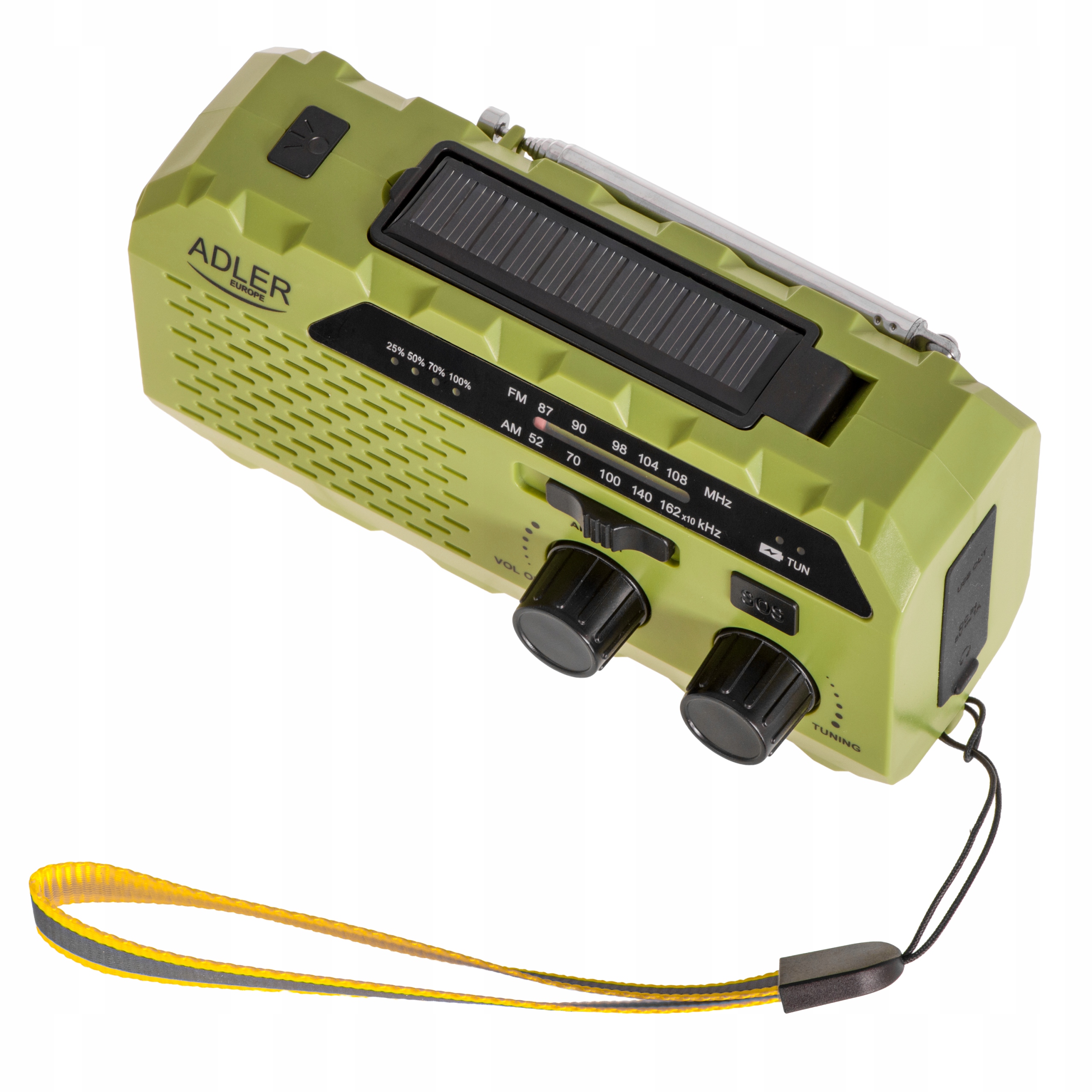 ✅Zasilanie multipower – trzy tryby: akumulator 1200 mAh, panel solarny oraz mechanizm korbkowy (dynamo) Adler