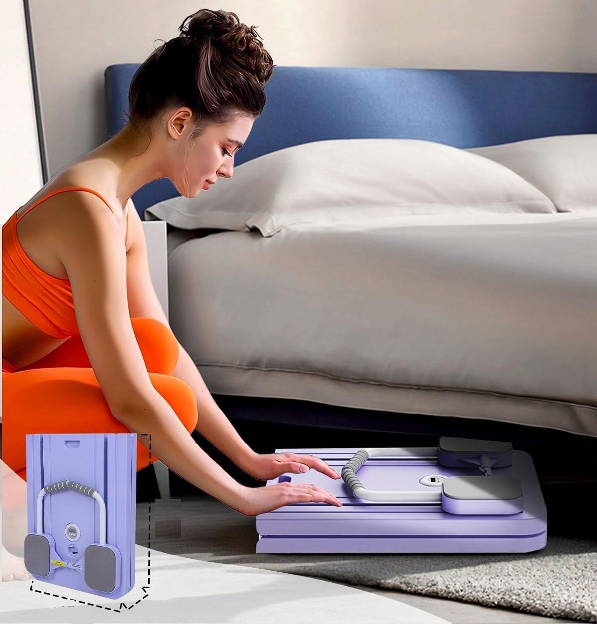 Deska do pilatesu zajmuje naprawdę mało miejsca – po złożeniu możesz ją wygodnie oprzeć o ścianę, wsunąć pod łóżko albo postawić w kącie pokoju . Dzięki płaskiej konstrukcji bez problemu zmieści się nawet w niewielkim mieszkaniu. To sprzęt, który nie zagraca przestrzeni i zawsze masz go pod ręką, kiedy chcesz wykonać szybki trening.