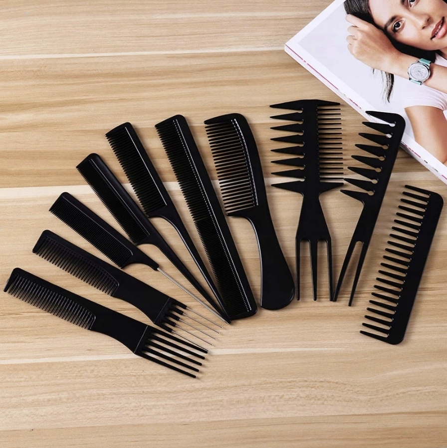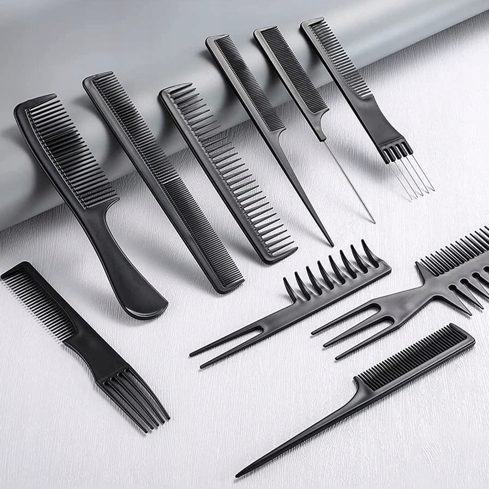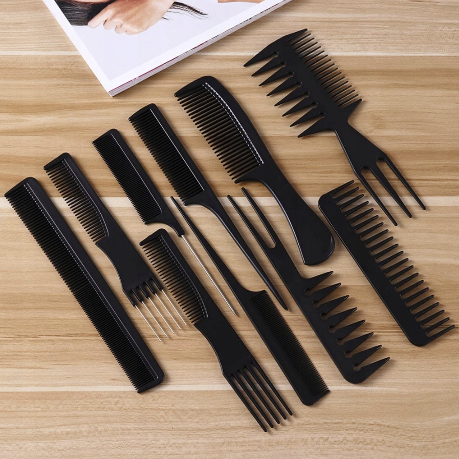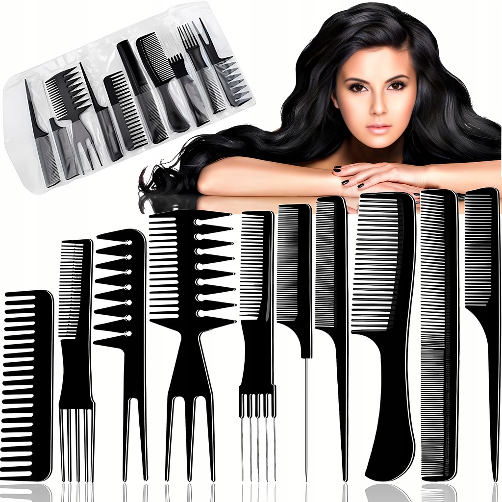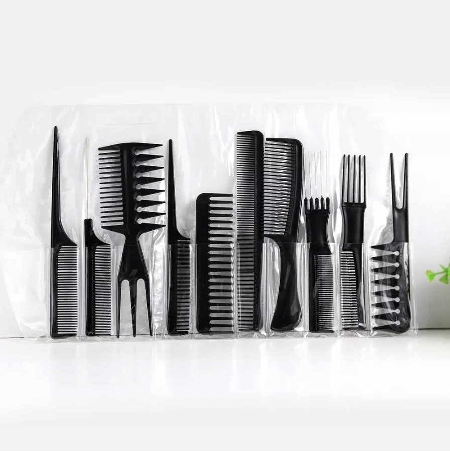 ZESTAW GRZEBIENI WŁOSÓW FRYZJERSKICH GRZEBIEŃ PROFESJONALNE 10 sztuk + Etui