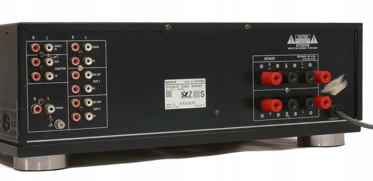 Seria wzmacniaczy budżetowych ES (Extremely high Standard) skierowana jest w myśl założeń firmy SONY do najbardziej wymagającej grupy klientów. Można powiedzieć z czystym sumieniem, że oferowana na tej aukcji pięćset trzydziestka to doskonała, solidna konstrukcja z przełomu lat 80/90 przewyższająca zdecydowanie pod względem wykonania jak i parametrów technicznych wszystkie niższe modele, oraz większość współczesnych wzmacniaczy w cenie do 3500zł. Jeżeli ktoś lubi charakter brzmienia SONY to będzie z pewnością bardzo zadowolony. Domyślam się, że ewentualny nabywca będzie posiadał sporą wiedzę na temat tego urządzenia i nie będzie to zakup przypadkowy. Ważne informacje odnośnie oferowanego na tej aukcji egzemplarza: technicznie 10 na 10, bez napraw, wszystkie komponenty oryginalne, bardzo wysokiej jakości – wielki firmowany (Sony ES) transformator, 4 kondensatory filtrujące (Nippon Chemi-Con), końcówka mocy oparta na 4 olbrzymich, prostokątnych tranzystorach SanKen (2x2SA1215, 2x2SC2921), przełączniki, potencjometry firmy Alps. Sprzęt bardzo dobrze się prezentuje za sprawą pięknego designu, łączącego nowoczesność oraz typowy dla klasy ES "majestatyczno-klasyczny" charakter. Jeszcze lepiej ma się sprawa dźwięku. Brzmienie opiera się na bogatej i bardzo szczegółowo prezentowanej średnicy. Góra doskonale zgrana ze środkiem, a bass przy swoim potężnym potencjale i niskich zejściach potrafi zachować kulturę. Odczuwalna jest b. dobra szczegółowość i piękna - szeroka i głęboka scena ze świetną stereofonią. Dźwięk w klasie ES nie zawodzi - to już potwierdzona teza !!! Satysfakcja gwarantowana !!!