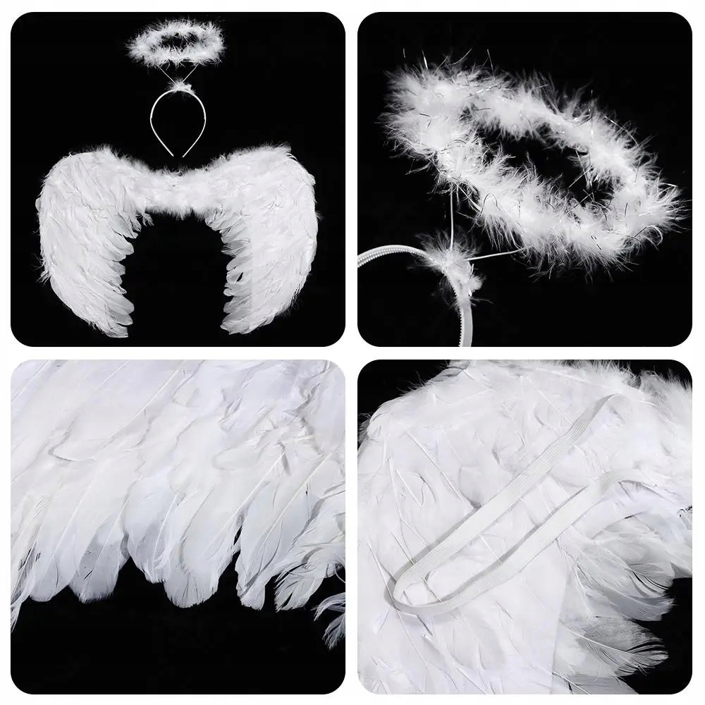 ✅ Skrzydła: piękne duże skrzydła, lekkie i wygodne, wykonane z piór, zakładane w łatwy sposób na gumki, rozmiar uniwersalny.