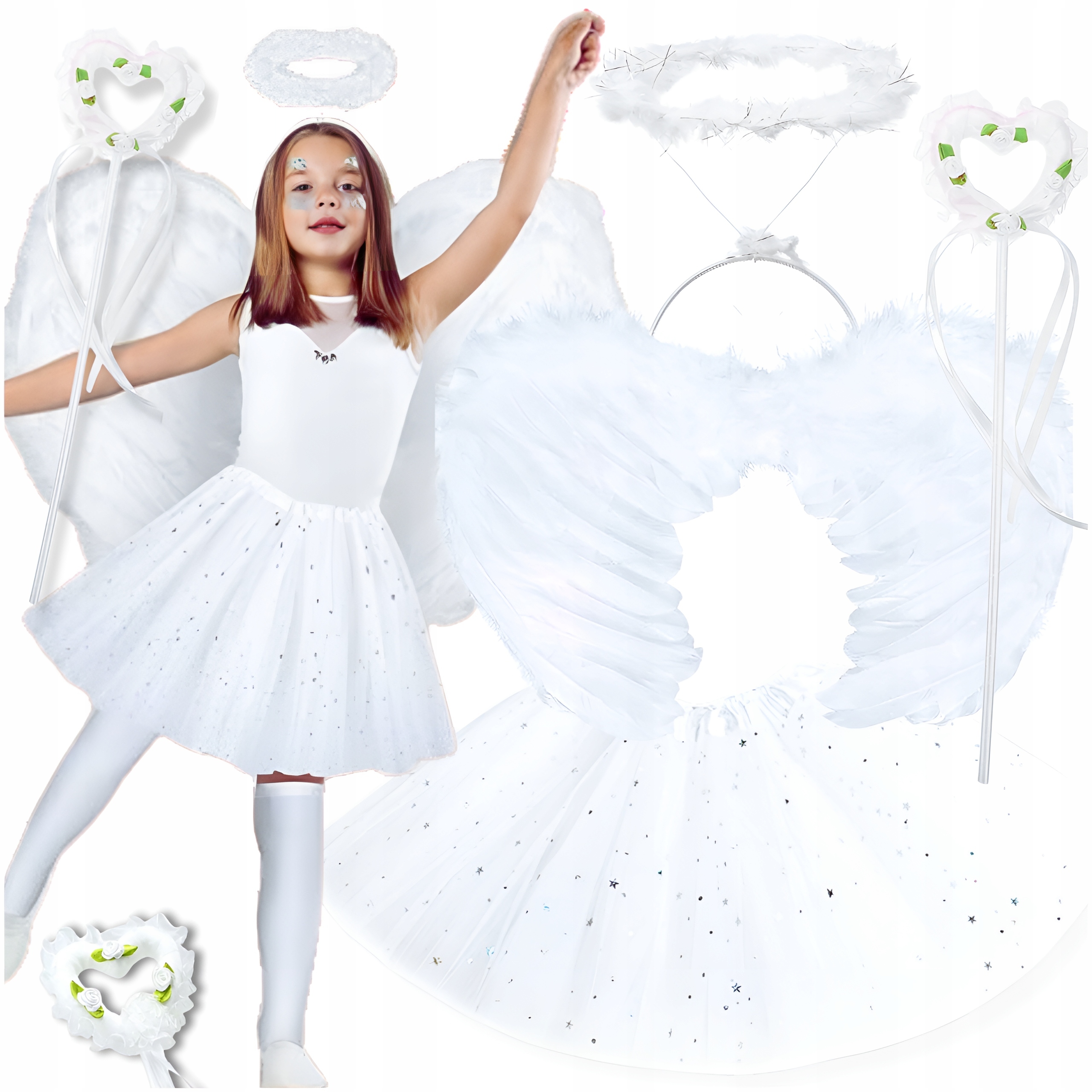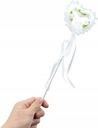 ✅ Różdżka, zakończona sercem ozdobionym białymi różyczkami i wstążkami – doskonały dodatek dla aniołka.