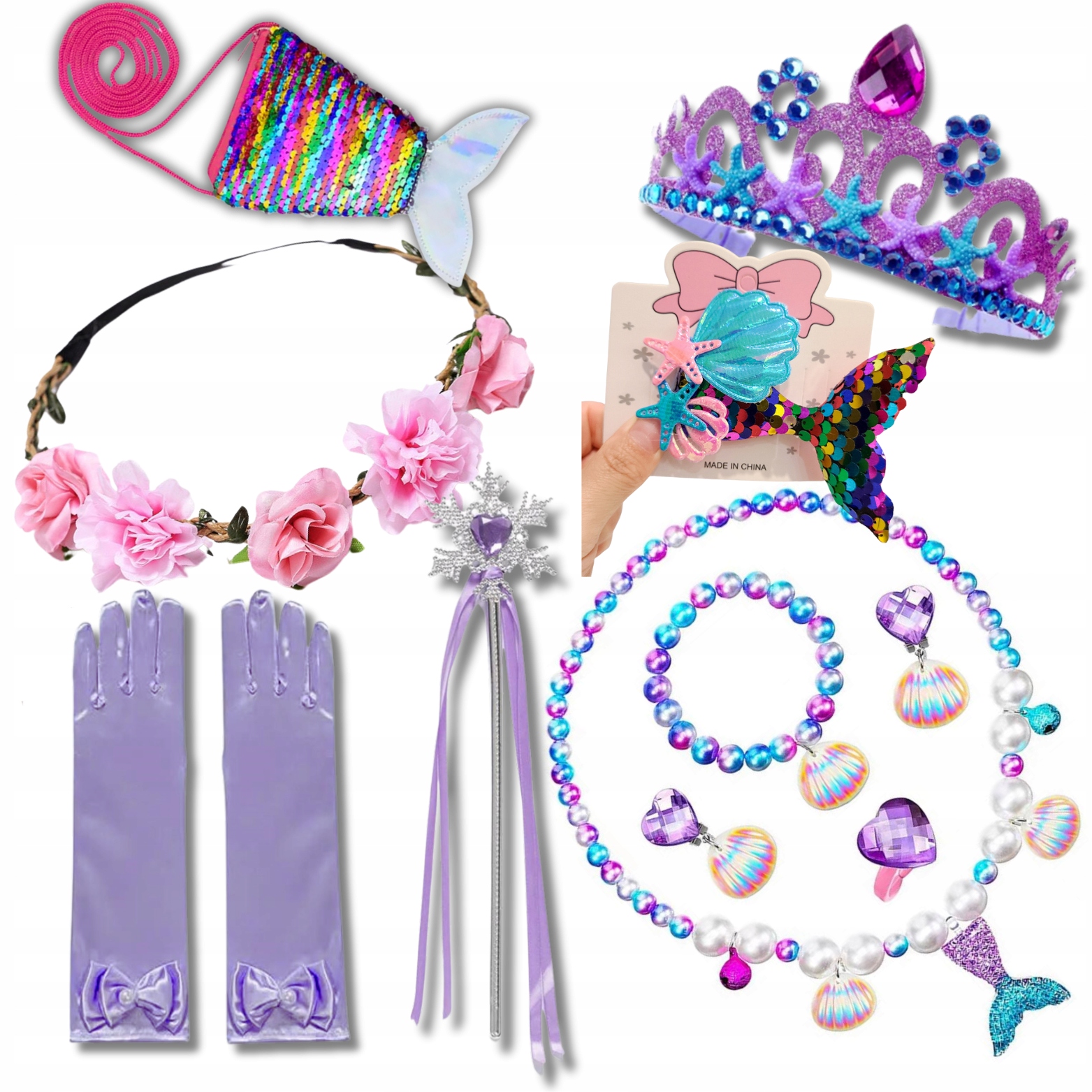 ✅ Ожерелье с жемчугом и ракушками, украшенное хвостом русалки, Универсальный размер на эластичной резинке. окружность: 22 см