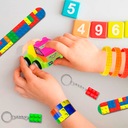 Bransoletki slap z klocków konstrukcyjnych są łatwe w użyciu, a wystarczy tylko umieścić bransoletki slap z motywem klocków konstrukcyjnych na środku nadgarstka, delikatnie stuknąć go w dłoń, a bransoletki slap imprezowe z klocków konstrukcyjnych owiną się wokół dłoni.