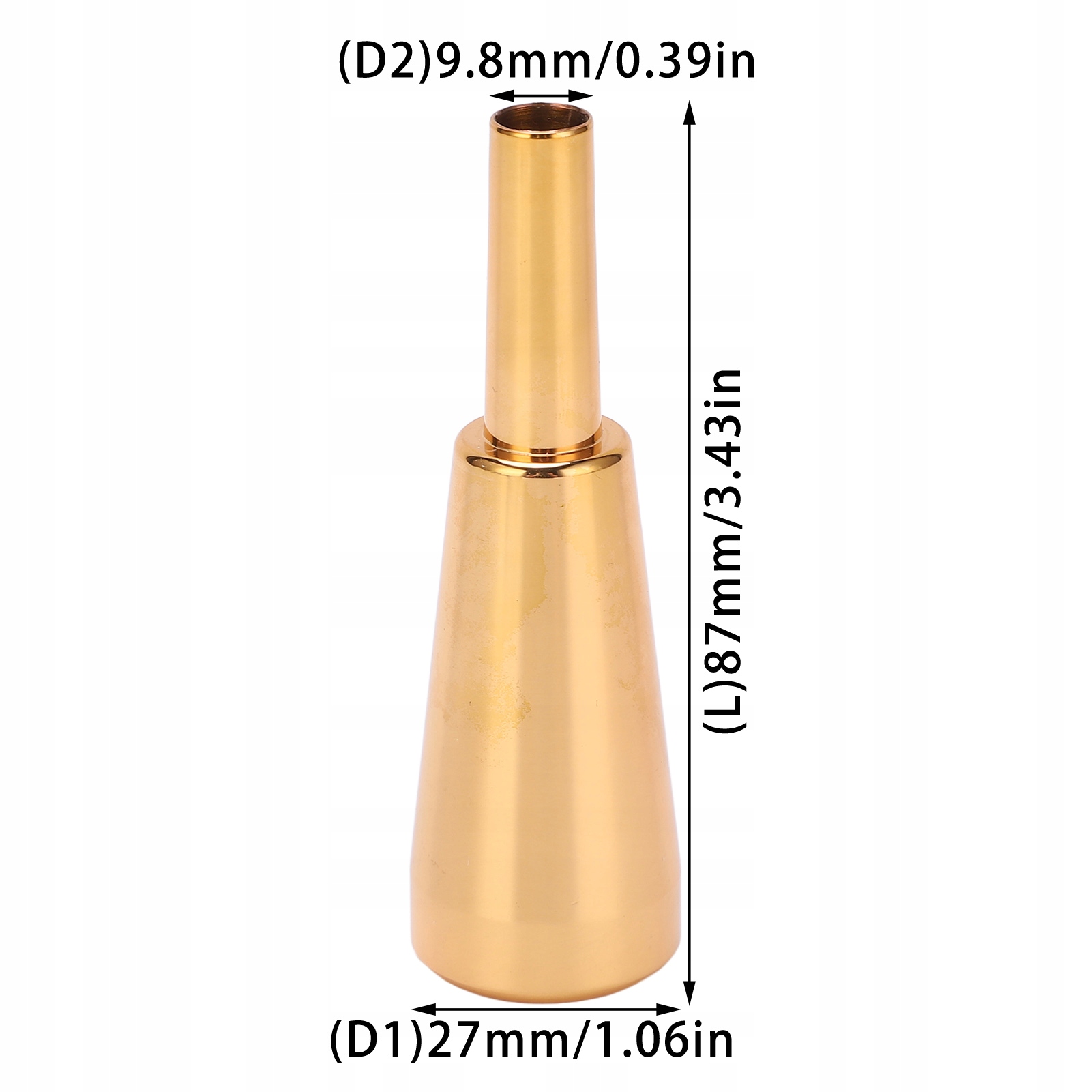 4. Grubszy i cięższy: Ustnik trąbki jest grubszy i cięższy niż zwyke trąby, a dźwięk stanie się ciemniejszy, powodując bogaty dźwięk dźwiękowy