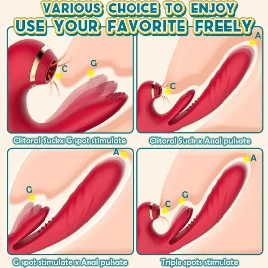 Doświadcz niezrównanej przyjemności z naszym wibratorem-dildo 5 w 1. Ta rewolucyjna zabawka wyposażona jest w 3 mocne silniczki zapewniające intensywną stymulację wewnętrzną i zewnętrzną. Dzięki 3 trybom wibracji i pchania + 10 pulsacji + 7 trybom ssania możesz odkrywać i znaleźć swój ulubiony rytm. Osiągnij wielokrotne orgazmy dzięki jednoczesnej stymulacji łechtaczki, punktu G i punktu A. Pulsujące działanie z częstotliwością 300 impulsów na minutę wyniesie Twoją przyjemność na nowy poziom. Odkryj moc tego wyjątkowego wibratora-królika już dziś!