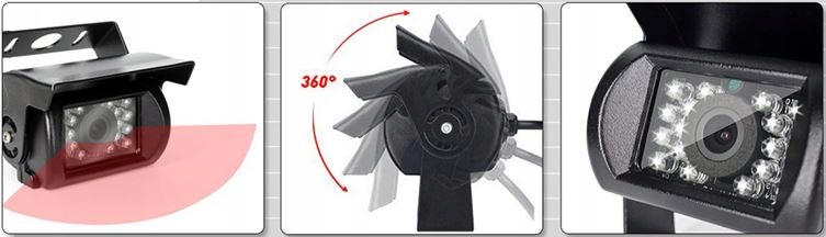 Parametry kamery zapewniają dobre spełnienie swoich podstawowych zadań jakim jest przesyłanie obrazu znajdujący się za pojazdem - w sposób szczególny należy podkreślić bardzo szeroki kąt widzenia czujnika obrazu oraz widzenia w poziomie. Wyposażona w diody IR - kamera sprawdzi się w nocy. Urządzenie posiada klasę wodoodporności IP67 zapewniającą ciągłość pracy nawet w deszczowych warunkach. Zestaw posiada niezbędne przewody do zamontowania kamerki.