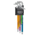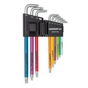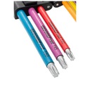 Zestaw długich kluczy TORX GEDORE RED R36401009 obejmuje dziewięć rozmiarów od T10 do T50, idealnych do precyzyjnych prac montażowych i serwisowych. Każdy klucz jest kodowany kolorem dzięki trwałej powłoce z tworzywa sztucznego, co umożliwia szybkie odnalezienie odpowiedniego rozmiaru. Klucze mają okrągły profil i matowo chromowaną powierzchnię, zapewniającą odporność na korozję oraz długą żywotność. Komplet jest przechowywany w składanym uchwycie z klipsem do paska, co ułatwia transport i organizację narzędzi.