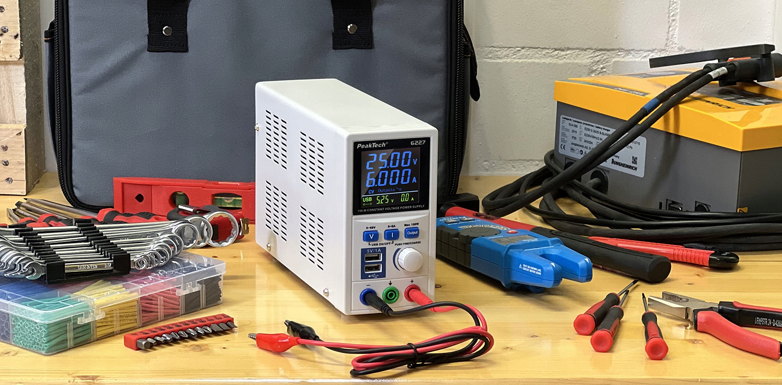 nazwa przedmiotu: PeakTech P 6227 DC 0-60 V / 0-6 A with Coloured LCD Display, Laboratory Power Supply with 2X USB Port, Adjustable Output, Operating Voltage 115-240 V AC / 50-60Hz-EN 61010-1