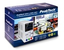 zawarte komponenty: 1 x PeakTech P 6227 DC zasilacz laboratoryjny 0-60 V/0-6 A z wyświetlaczem LCD, 2 x port USB