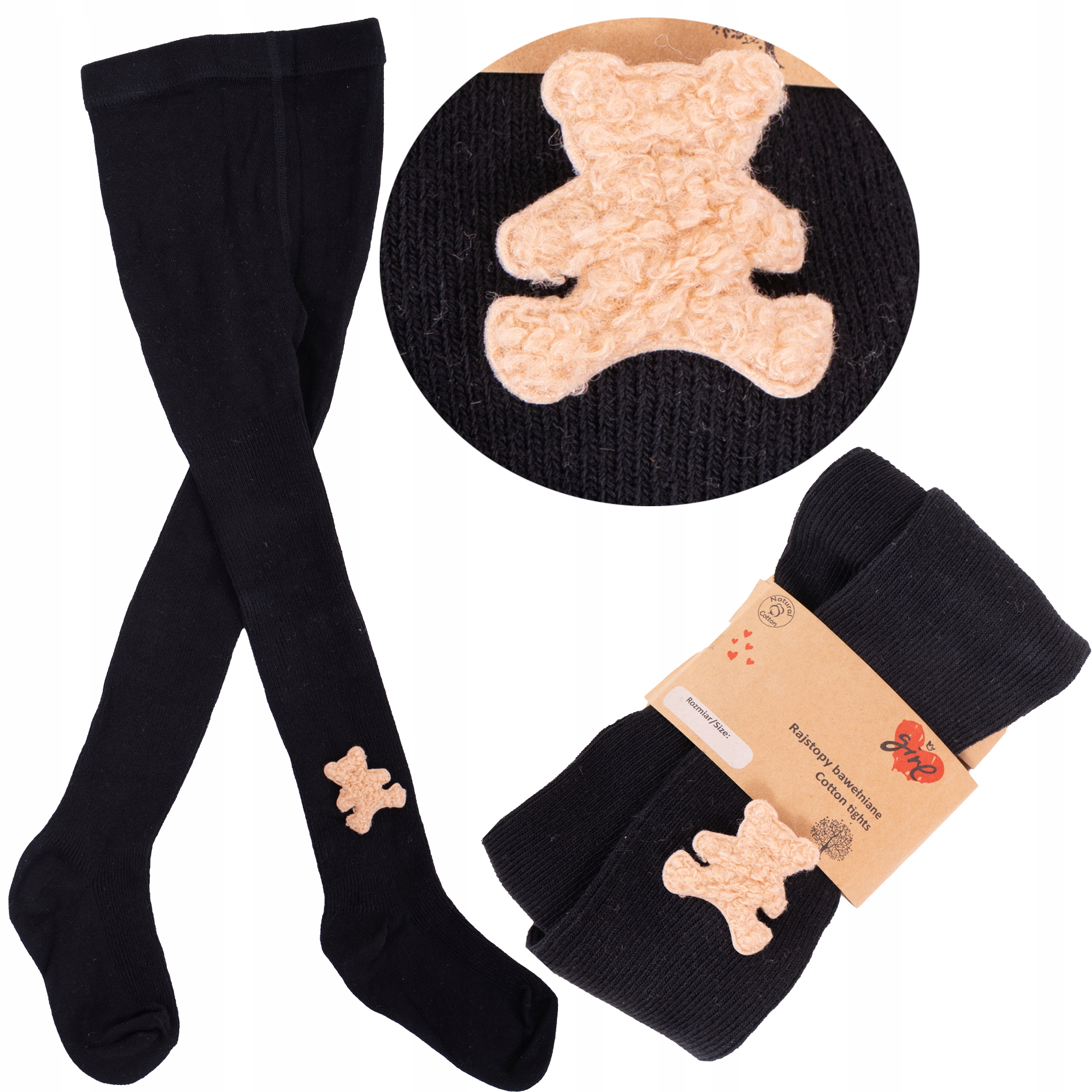 Rajstopki Dziecięce Bawełniane – Ciepłe, Kryjące, z Misiami| Wzór Prążki