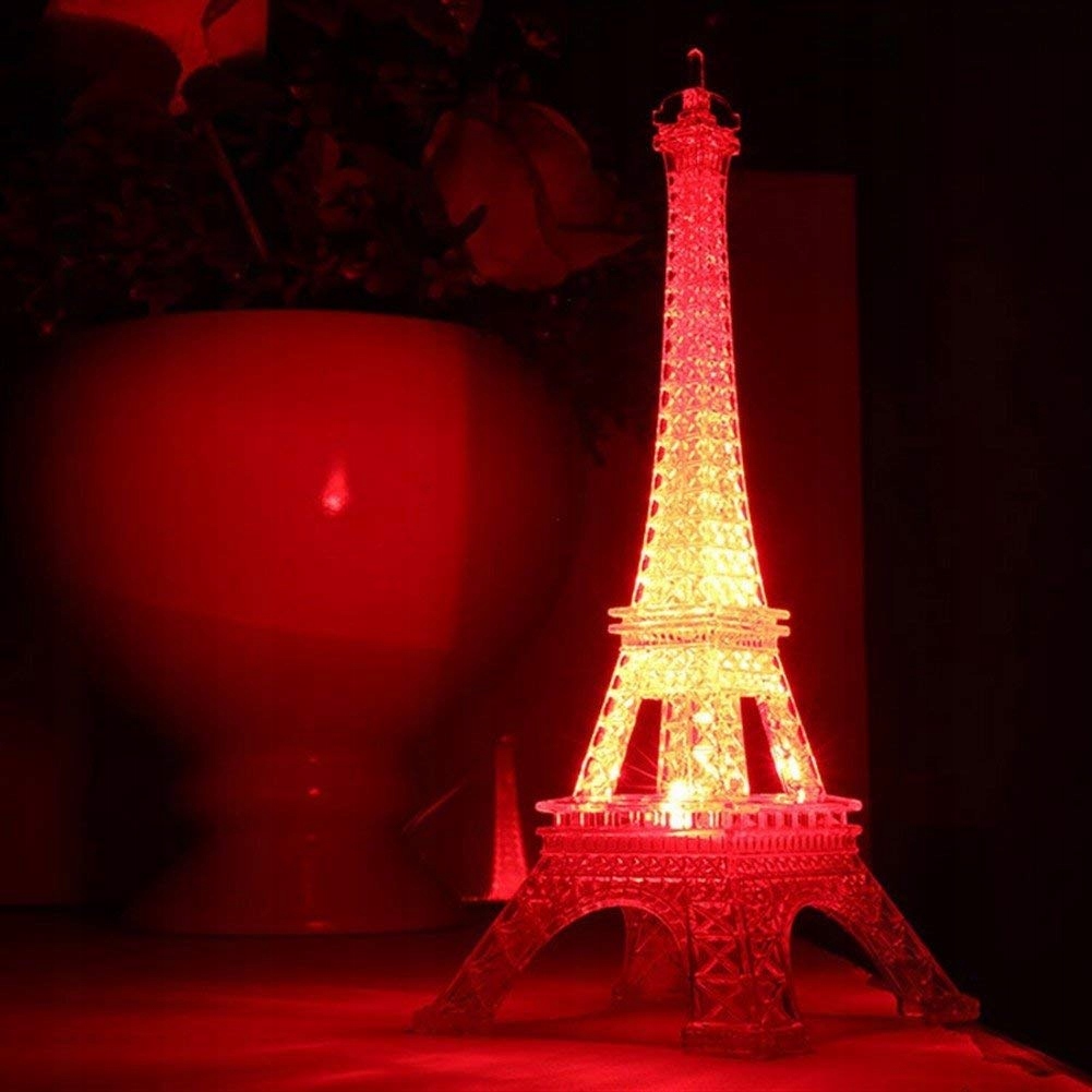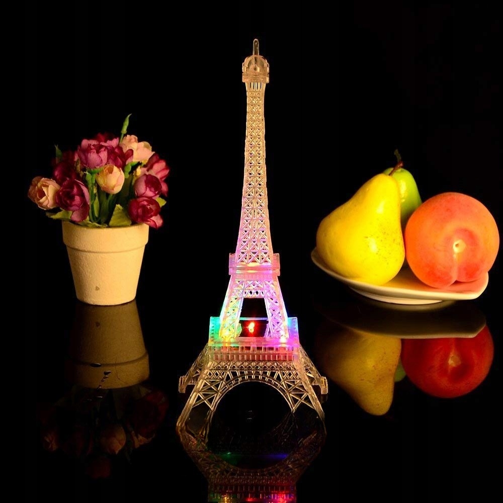 ✅Akrylowa kolorowa świecąca lampka nocna wieża eiffla z a na dole.