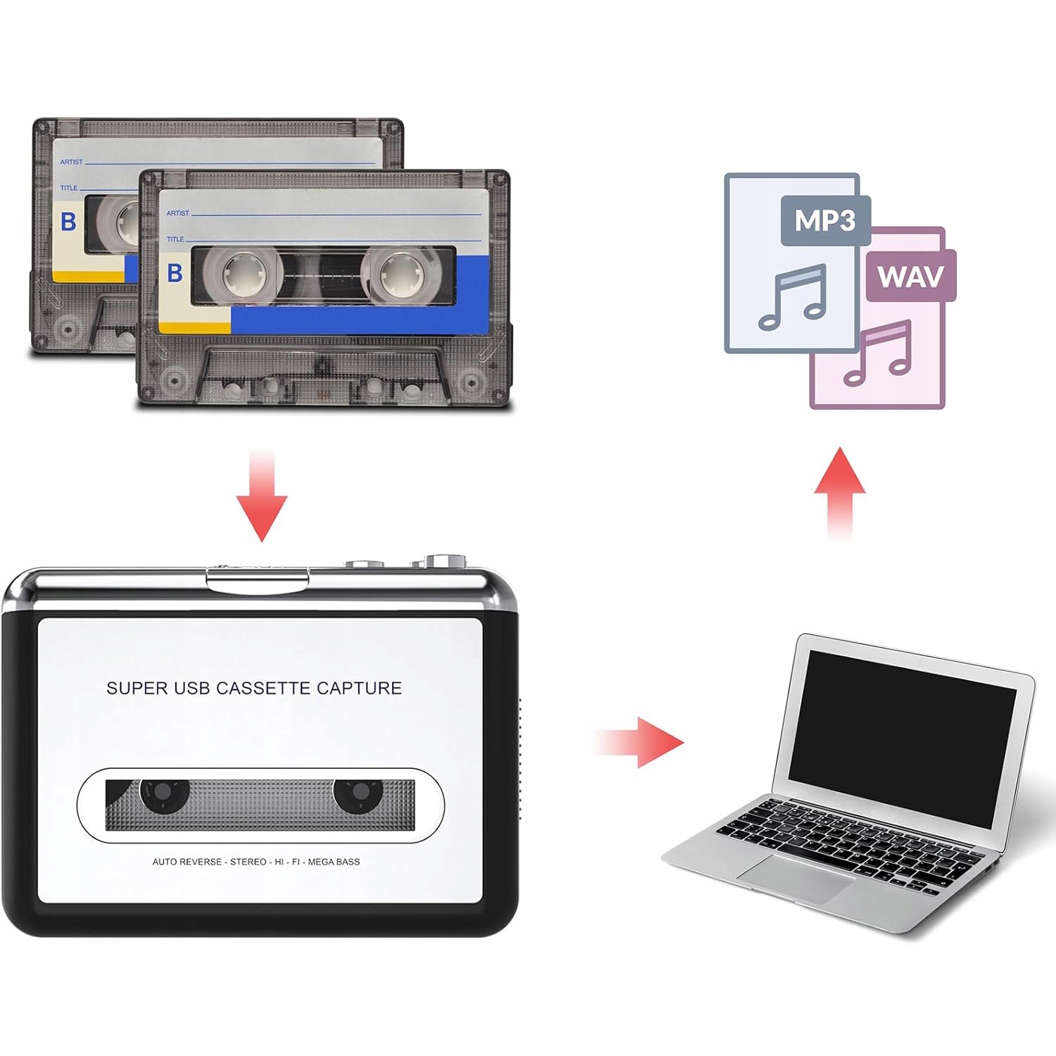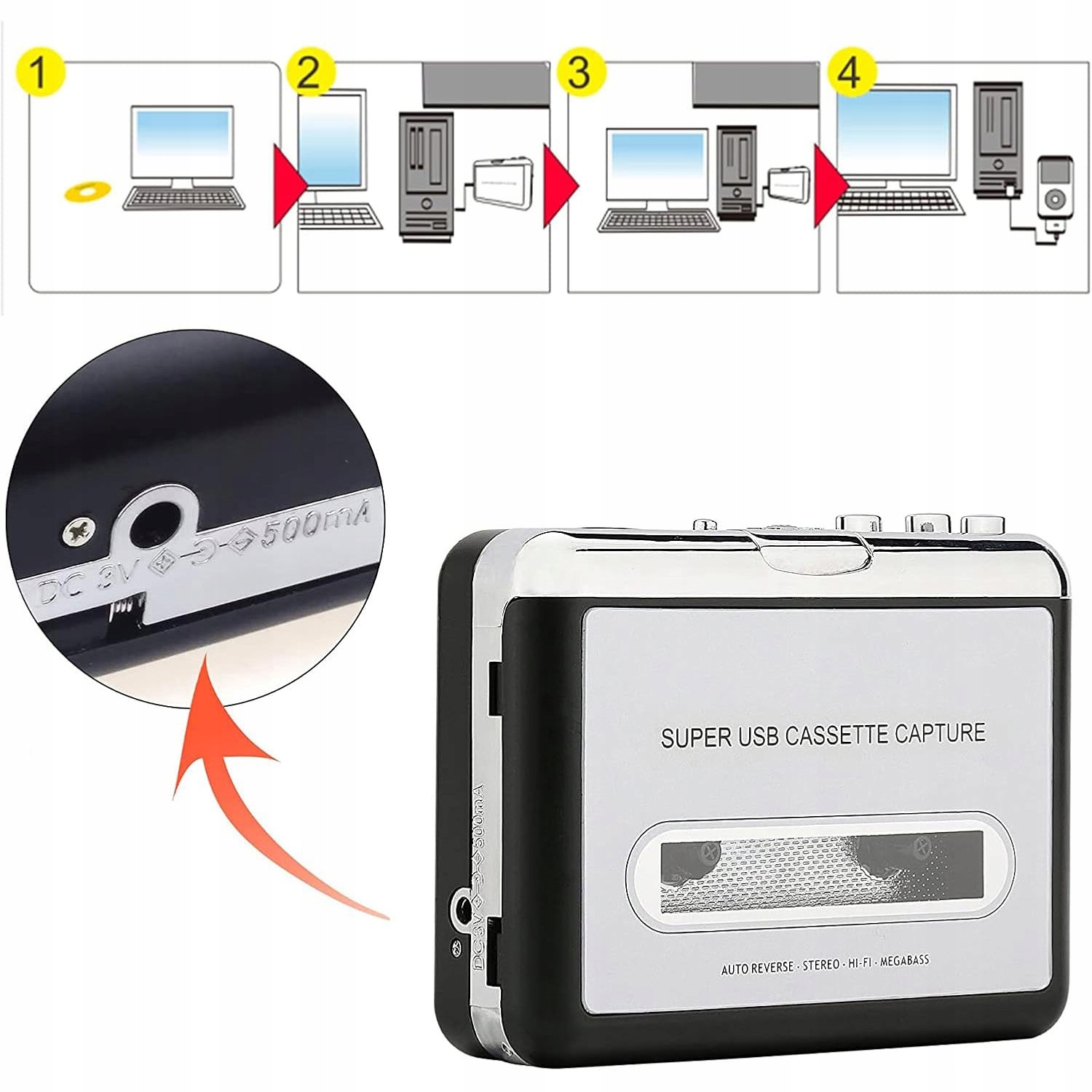 🖥️📻💿KONWERTER TAŚMY NA MP3 STEREO PRZENOŚNY ODTWARZACZ KASETOWY USB WYSOKIEJ JAKOŚCI DLA SYSTEMÓW WINDOWS XP/WIN7/WIN10/WIN11🖥️📻💿