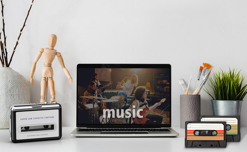Ten konwerter może być również używany do słuchania kaset magnetofonowych, ale wymagane są słuchawki. Dzięki wyjściu audio możesz słuchać muzyki przez słuchawki lub inne głośniki.