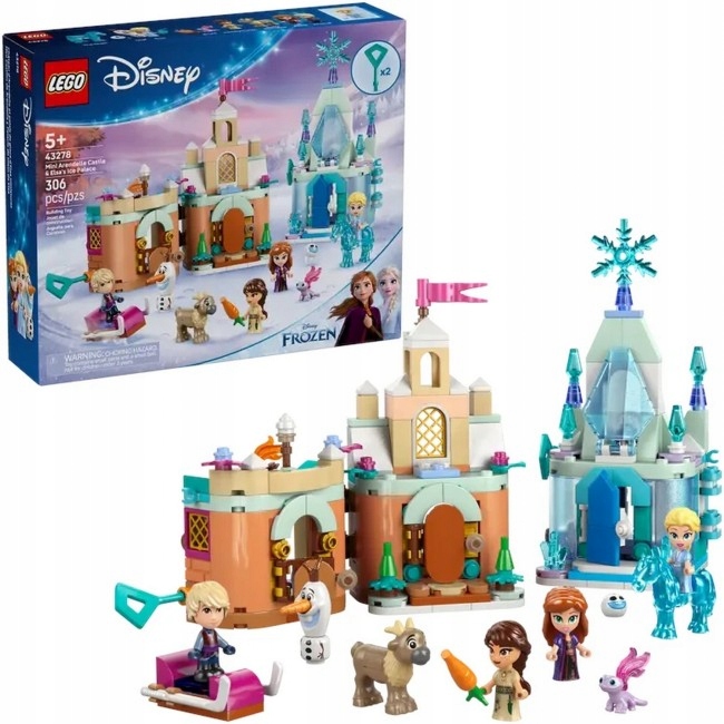Niekończąca się kreatywna frajda czeka na dzieci i fanów Krainy lodu 2 Disneya w wieku od pięciu lat podczaszabawy zestawem LEGO | Disney Miniaturowy zamek w Arendelle i lodowy pałac Elzy (43278). Zestaw z dwomaminimodelami zamków może wydawać się mały, ale w środku kryje ogromny potencjał. Każdy zamek ma otwieranedrzwi frontowe, sypialnie, stajnie oraz balkony. Ponadto jest tu mnóstwo akcesoriów. Zestaw zawiera równieżdziewięć postaci LEGO | Disney „Kraina lodu”: Elzę, Annę, Kristoffa, Haniamaję, Olafa, Nokka, Bruniego,małego renifera i bałwanka.