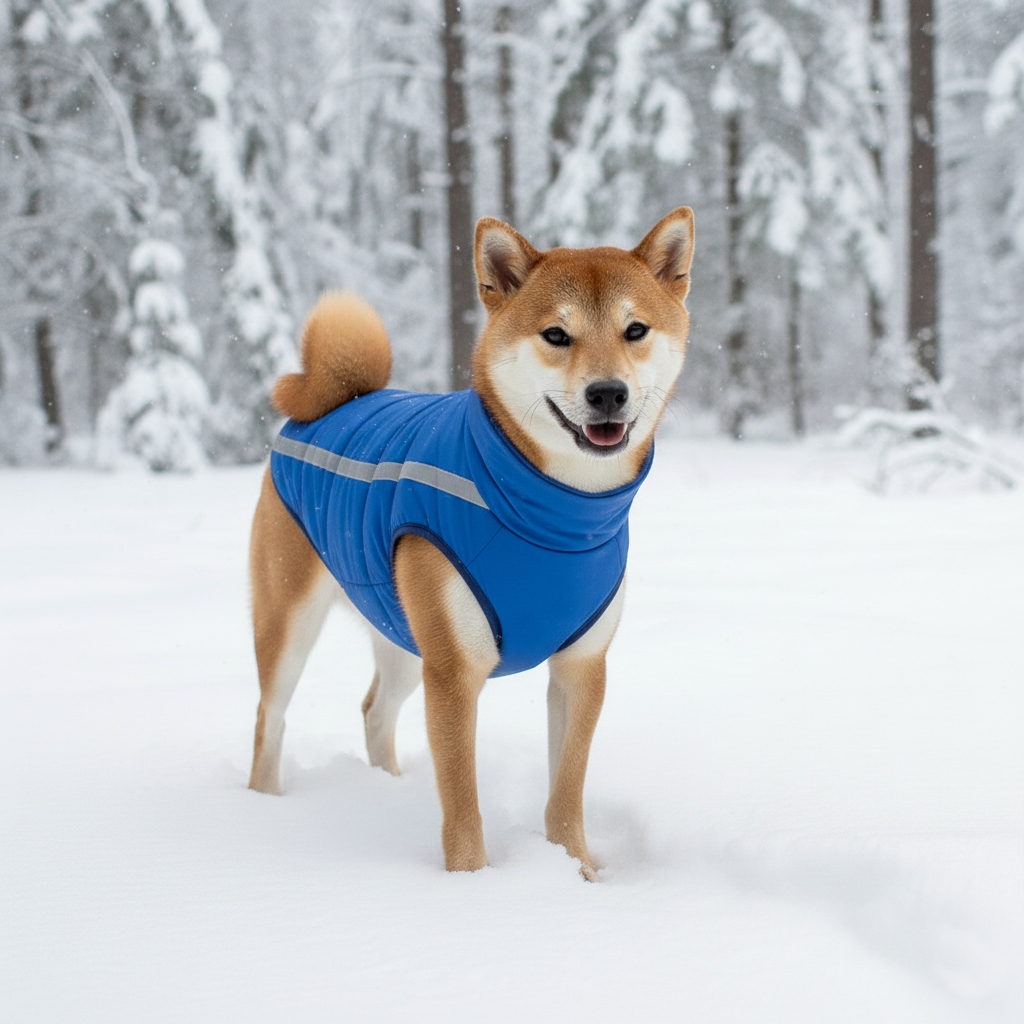 Stylowa i funkcjonalna kurtka zimowa dla psa, wykonana z wysokiej jakości materiałów wodoodpornych. Zapewnia ciepło i ochronę przed zimnem oraz wilgocią, a dwa odblaskowe paski po bokach zwiększają widoczność pupila po zmroku. Idealna na spacery w mroźne dni – komfort, bezpieczeństwo i elegancja w jednym!