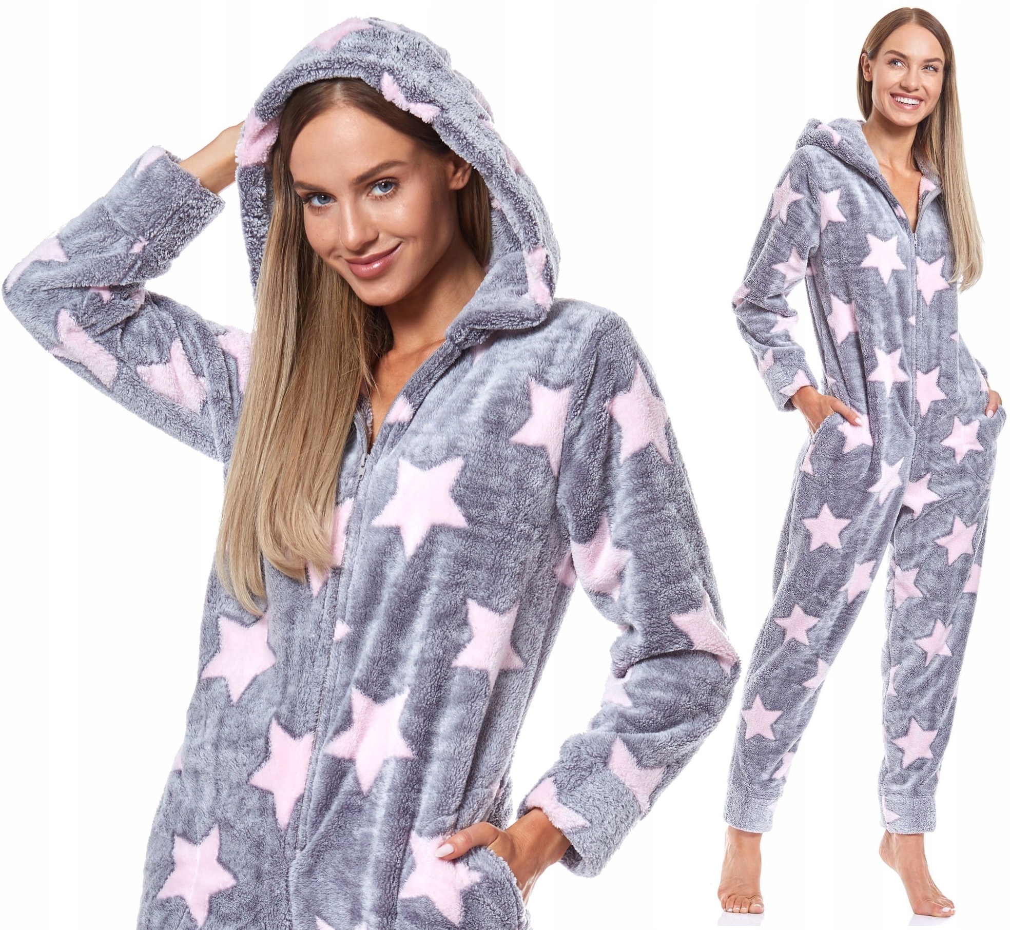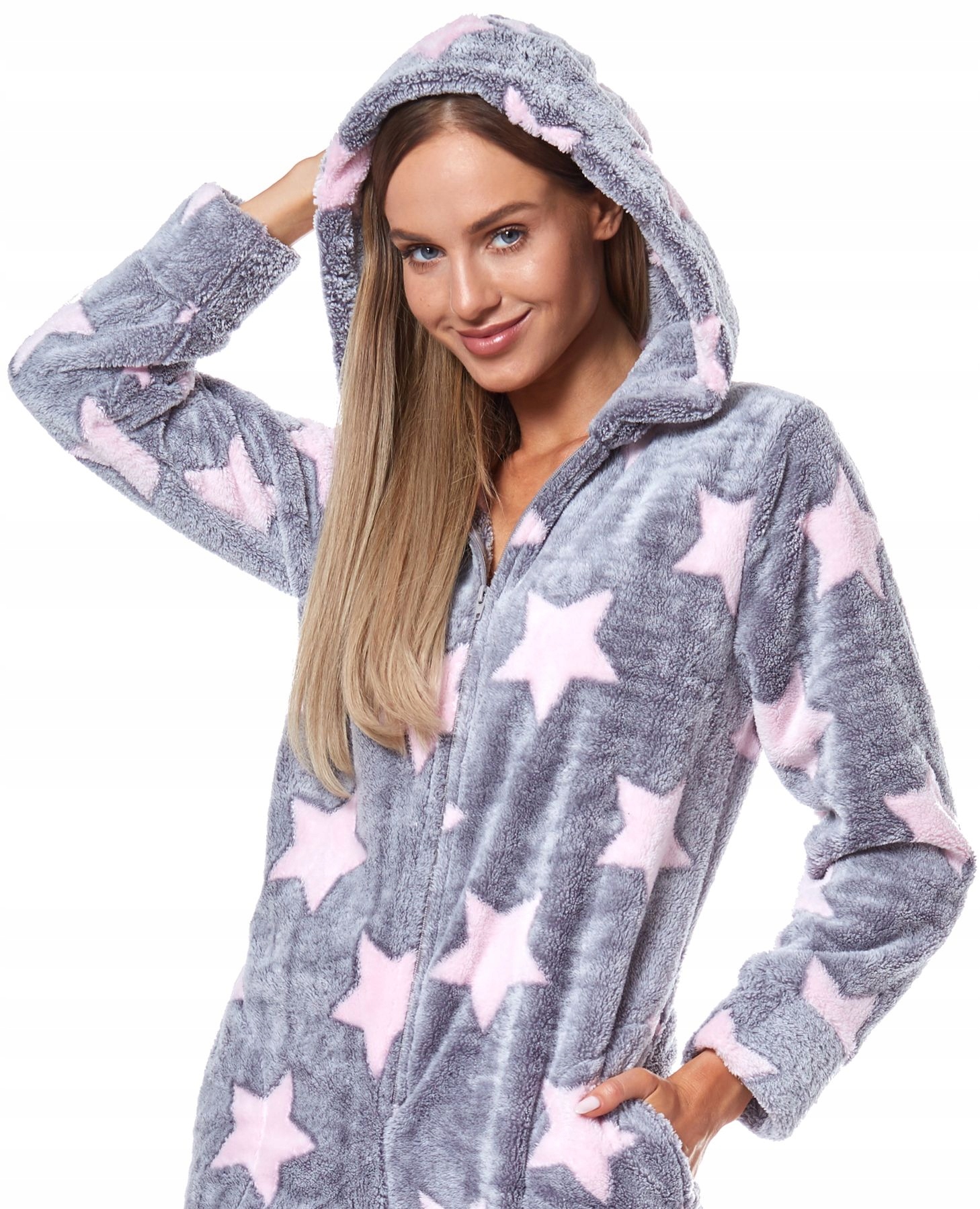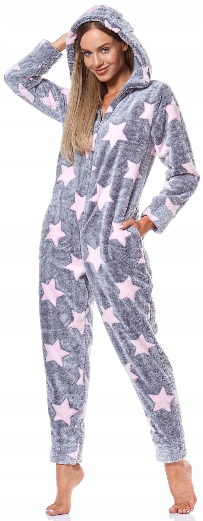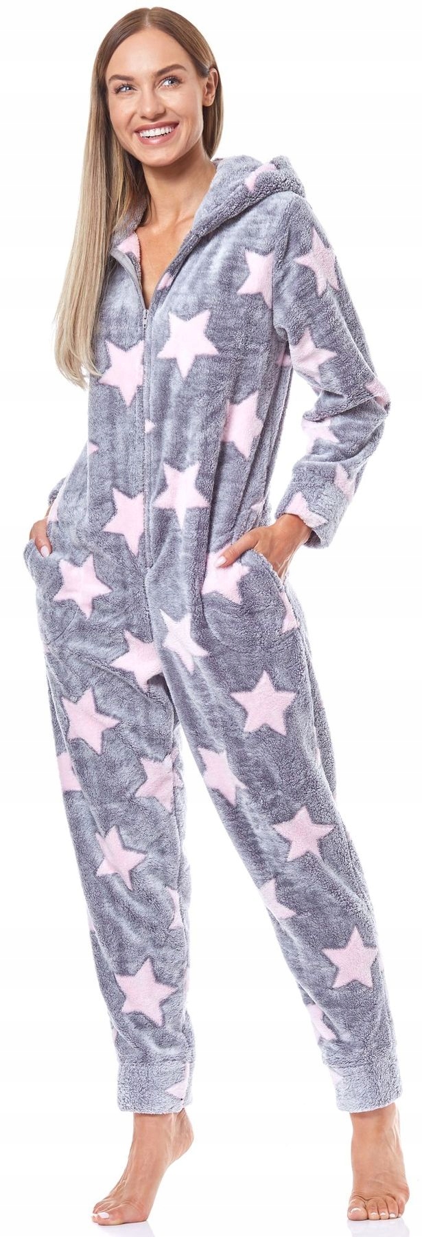 Софт комбинезон с капюшоном. Застегивается на молнию. Пижама с практичными карманами. Все в звезды.