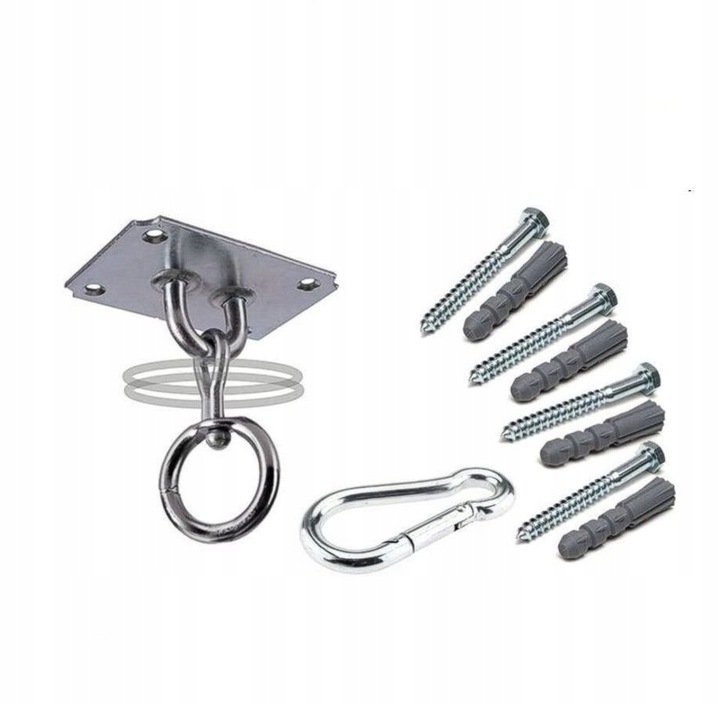 Zestaw montażowy przeznaczony do podwieszenia sprzętu sportowego (np. worków treningowych, gruszek, piłek bokserskich itp. Zestaw ten polecamy do sprzętu o wadze maksymalnej do 50 kg.