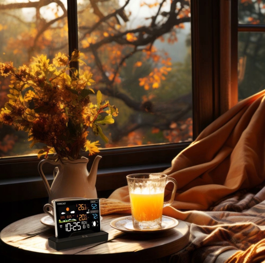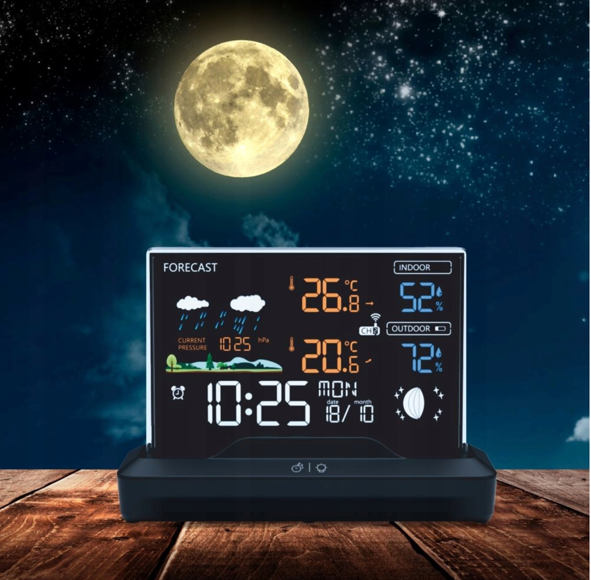 ➡️ Śledź aktualny etap Księżyca i planuj aktywności nocne lub ogrodowe. Wskaźnik komfortu powietrza pomaga utrzymać zdrowy klimat w domu.