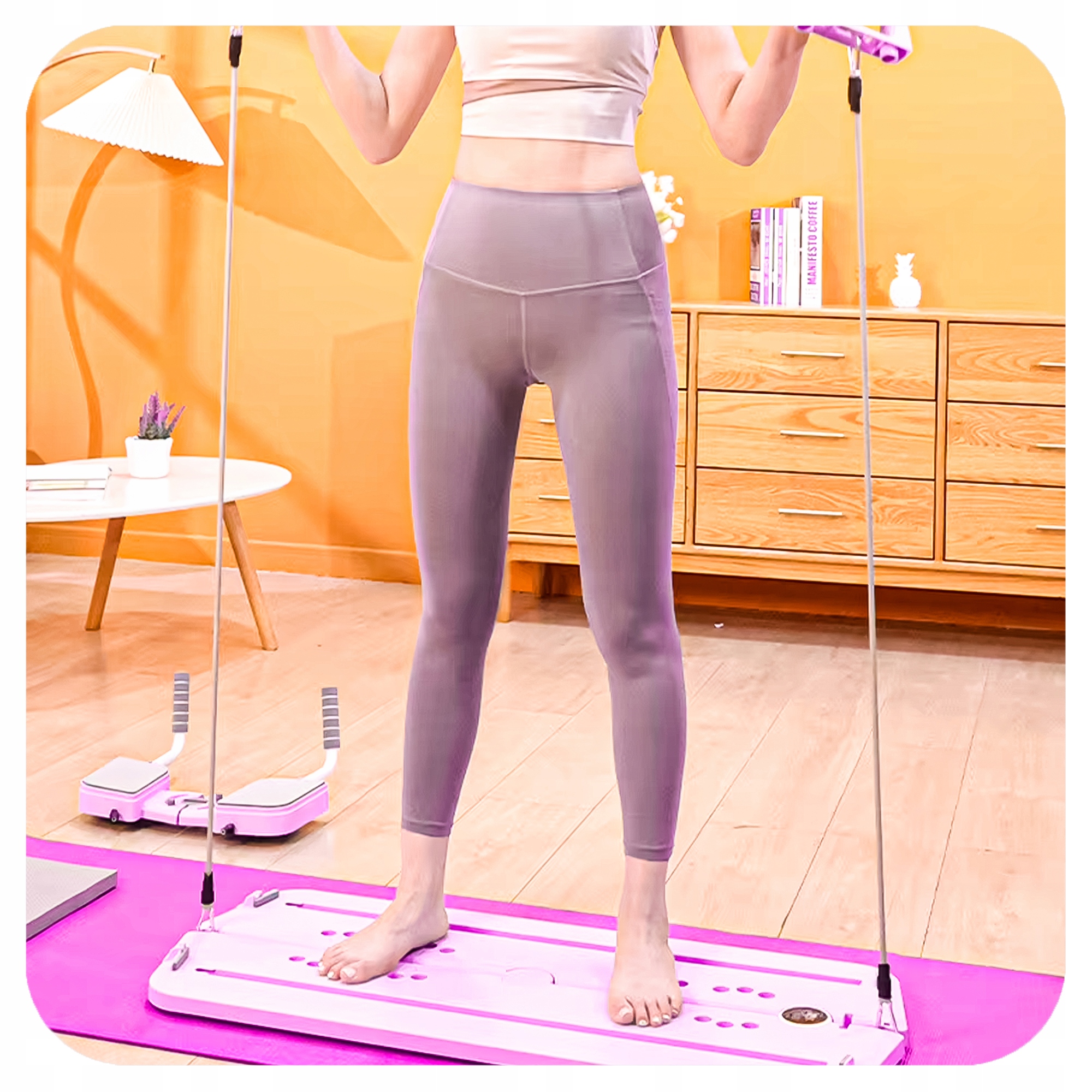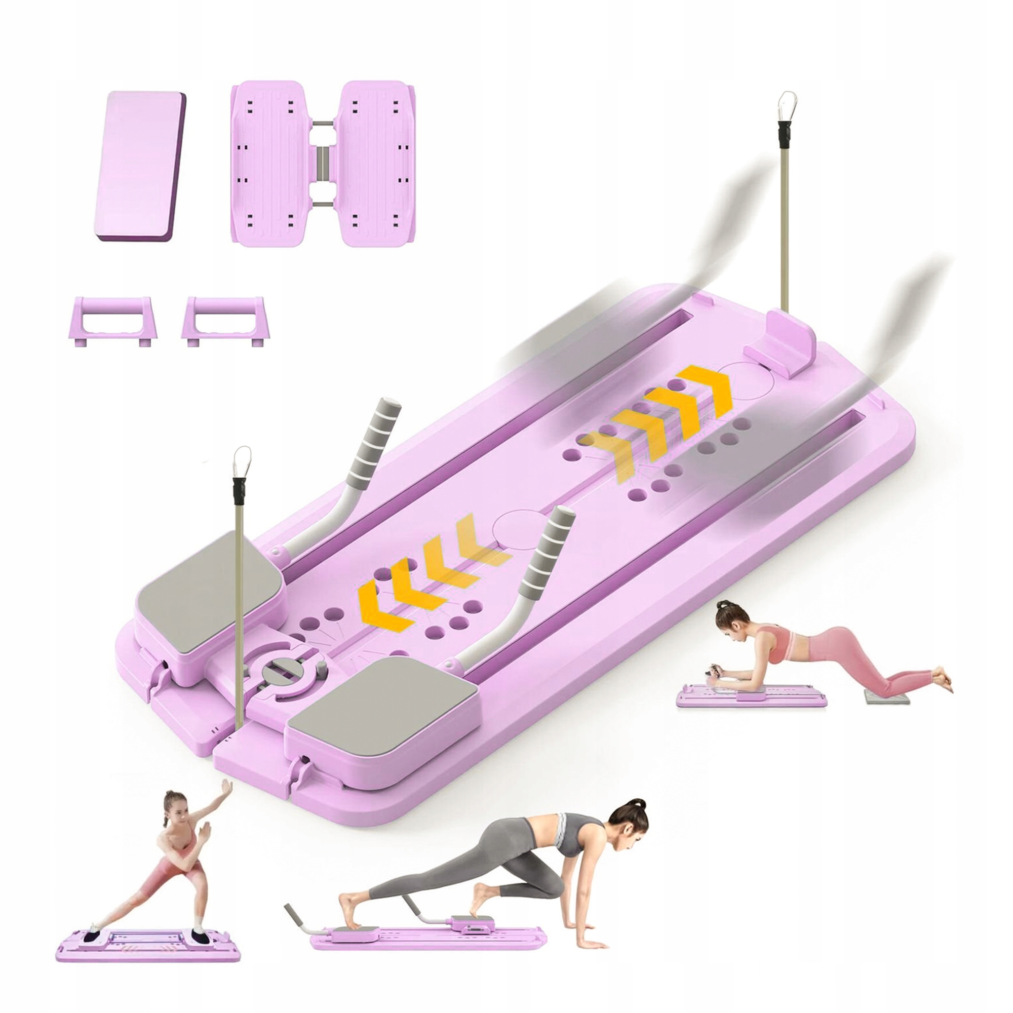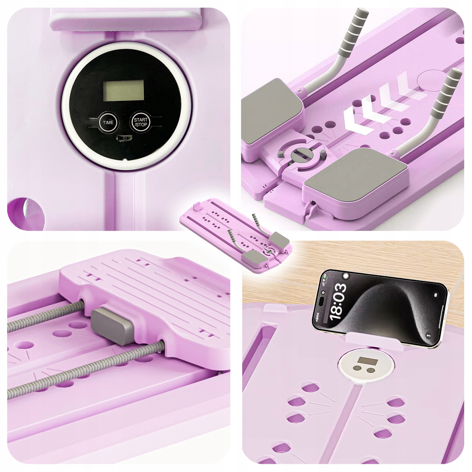 Ta różowa platforma treningowa to idealne rozwiązanie dla osób, które chcą poprawić kondycję, spalić kalorie i wzmocnić mięśnie całego ciała. Dzięki zestawowi akcesoriów wykonasz dziesiątki ćwiczeń – od pilates i jogi, przez pompki, aż po trening brzucha, ramion, nóg i pośladków. Wbudowany licznik LCD ułatwi kontrolę nad czasem i intensywnością ćwiczeń, a kompaktowa, składana konstrukcja sprawi, że sprzęt zmieści się w każdym mieszkaniu.