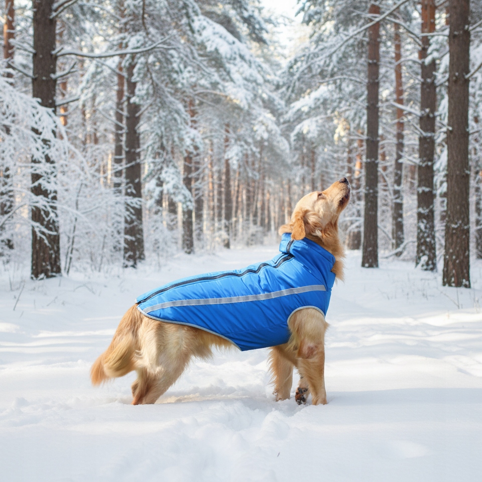 Stylowa i funkcjonalna kurtka zimowa dla psa, wykonana z wysokiej jakości materiałów wodoodpornych. Zapewnia ciepło i ochronę przed zimnem oraz wilgocią, a dwa odblaskowe paski po bokach zwiększają widoczność pupila po zmroku. Idealna na spacery w mroźne dni – komfort, bezpieczeństwo i elegancja w jednym!