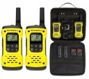 Dzięki wodoodpornej konstrukcji, wytrzymałej obudowie i zasięgu do 10 km model T92 H2O pozwoli Ci zawsze pozostać w kontakcie z rodziną i znajomymi. Zintegrowana latarka może emitować światło białe lub czerwone i włącza się automatycznie po zetknięciu z wodą. Naciśnij przycisk alarmowy, aby aktywować tryb głośnomówiący i wyemitować głośny sygnał ostrzegawczy, dzięki któremu inne osoby z grupy będą wiedziały, że potrzebujesz pomocy. Do modelu T92 H2O dołączono akumulatory, ładowarkę sieciowa z 2 wtykami micro USB, zaczepy do paska z wbudowanym gwizdkiem oraz wytrzymały futerał. Otrzymujesz wszystko, co potrzebne, aby pozostać w kontakcie podczas swoich szalonych przygód.