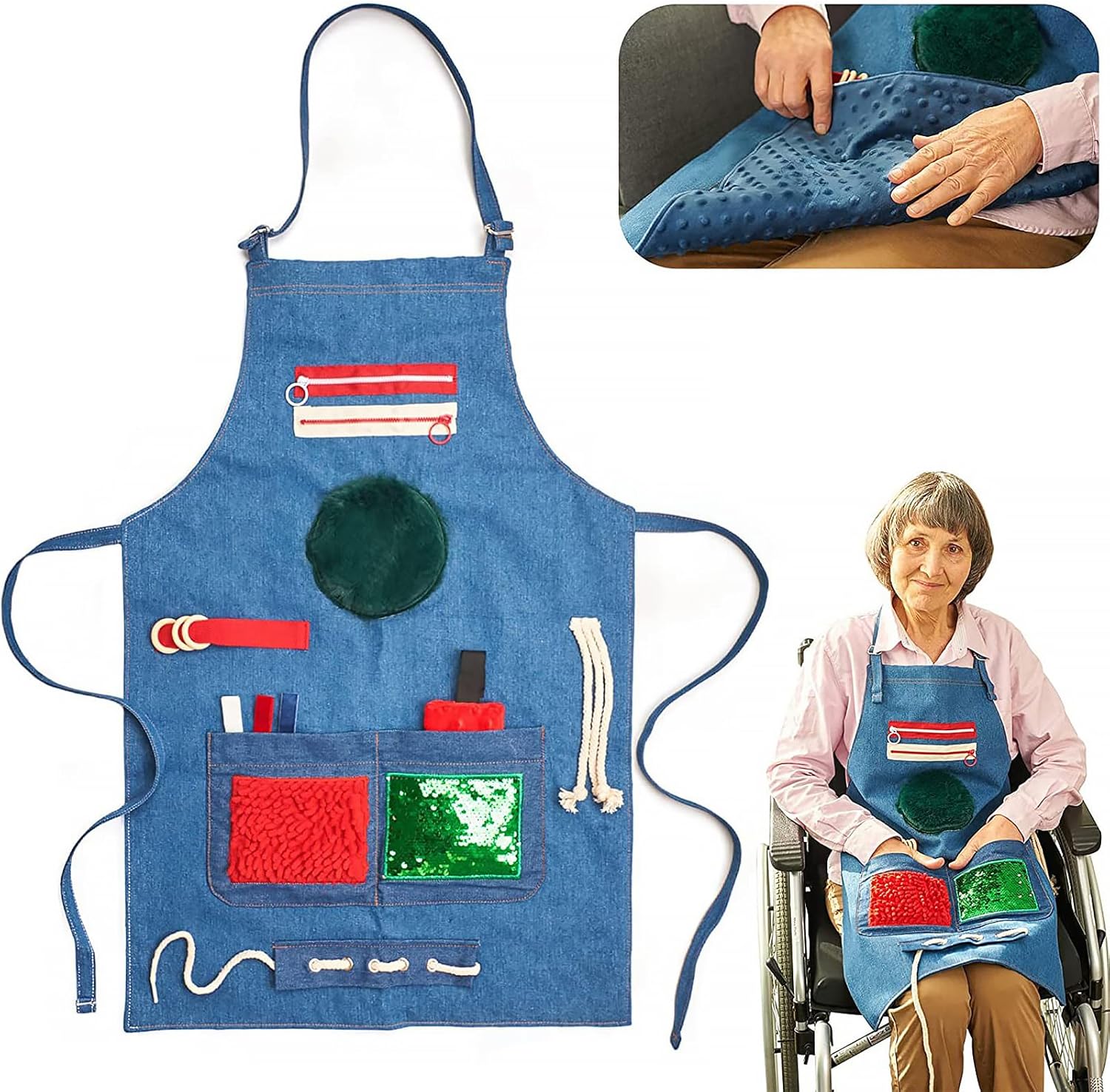 koc sensoryczny dla osób z demencją wykorzystuje ręcznie montowane okucia dla długiej żywotności. koc sensoryczny dla osób z demencją znosi codzienne użytkowanie bez luzowania elementów. koc sensoryczny dla osób z demencją oferuje żywe kolory i wyraziste faktury, które pobudzają uwagę.