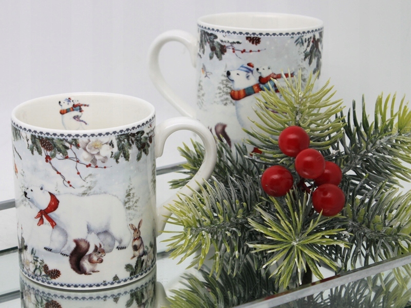 Wyjątkowy zestaw dwóch porcelanowych kubków o pojemności 250 ml to idealny wybór dla osób, które pragną poczuć magię zimowych i świątecznych chwil w swoim domu. Każdy kubek ozdobiony jest uroczym motywem niedźwiedzia polarnego w scenerii zimowego lasu, z towarzyszącymi mu leśnymi zwierzętami. Delikatne barwy, świąteczne akcenty i subtelne niebieskie wykończenie przywołują atmosferę spokoju, radości i rodzinnego ciepła.