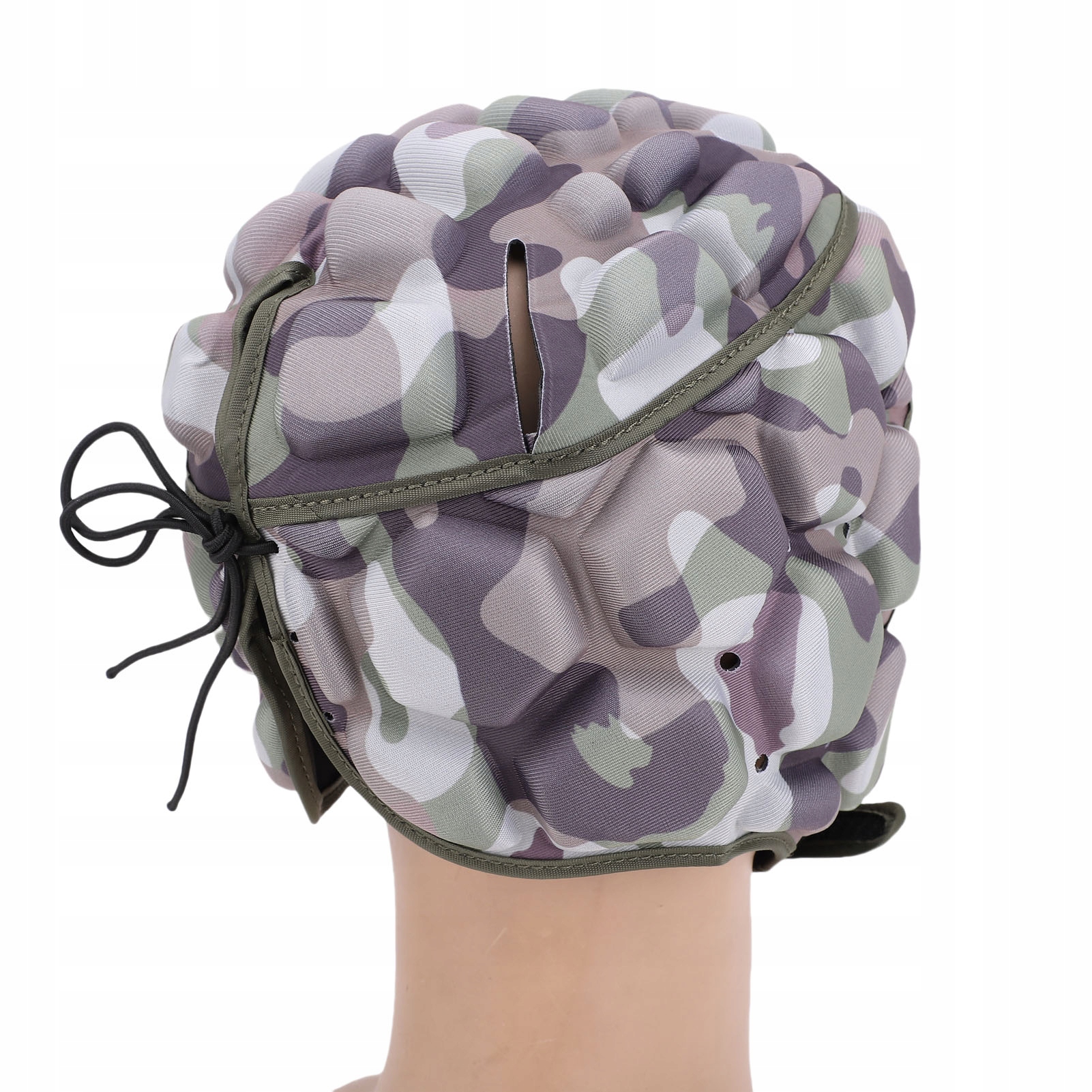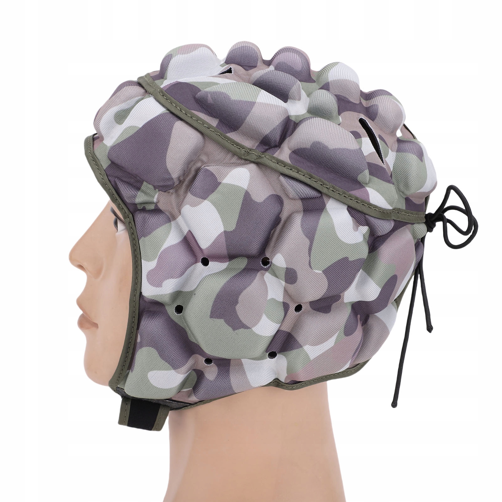 1. Materiał: Hełm rugby jest zbudowany z materiału premium EVA, który zapewnia amortyzację podczas uderzeń fizycznych. Jest specjalnie zaprojektowany w celu ochrony głowy przed obrażeniami podczas zajęć sportowych.