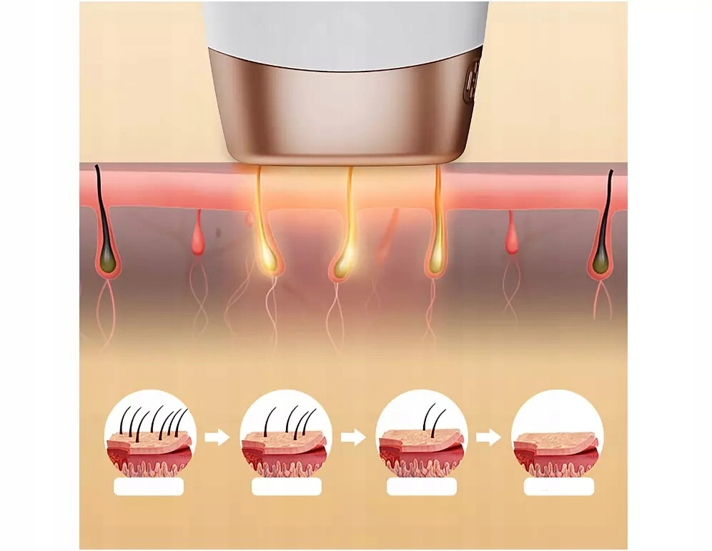 Zastosowana technologia Intense Pulsed Light (IPL) wykorzystuje silne impulsy światła, które docierają do cebulek włosów i skutecznie hamują ich wzrost u źródła.