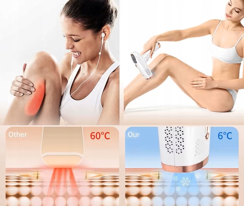 ✅Funkcja ICE COOL – chłodzenie skóry zapobiega podrażnieniom i zaczerwienieniom
