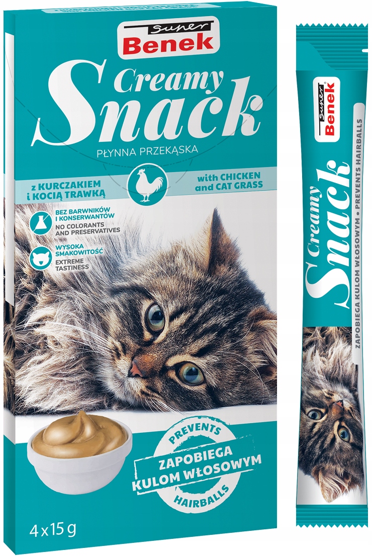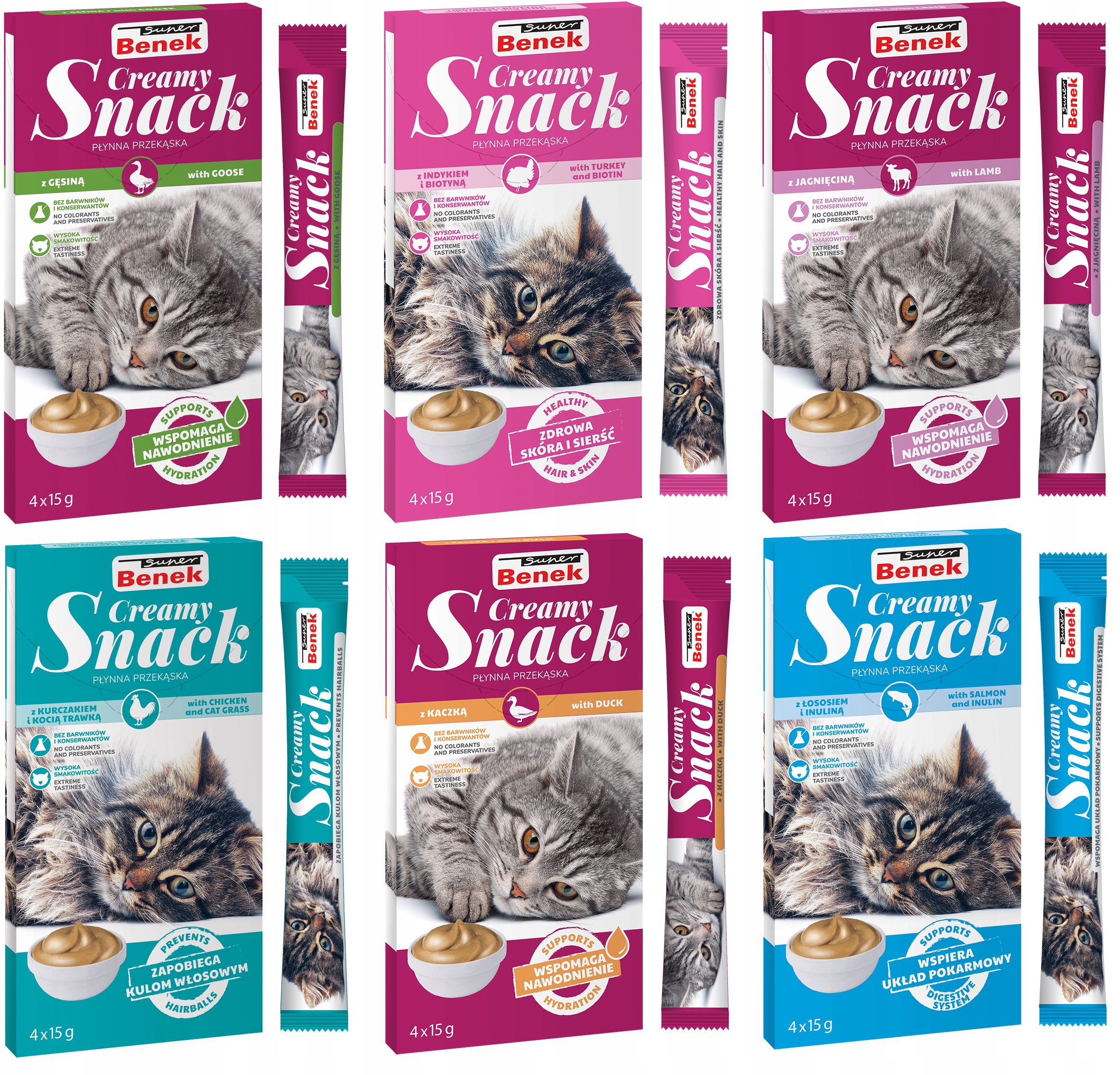 Торговое название Super Benek Creamy Snack przekąska dla kotów mix smaków (24x15 g)