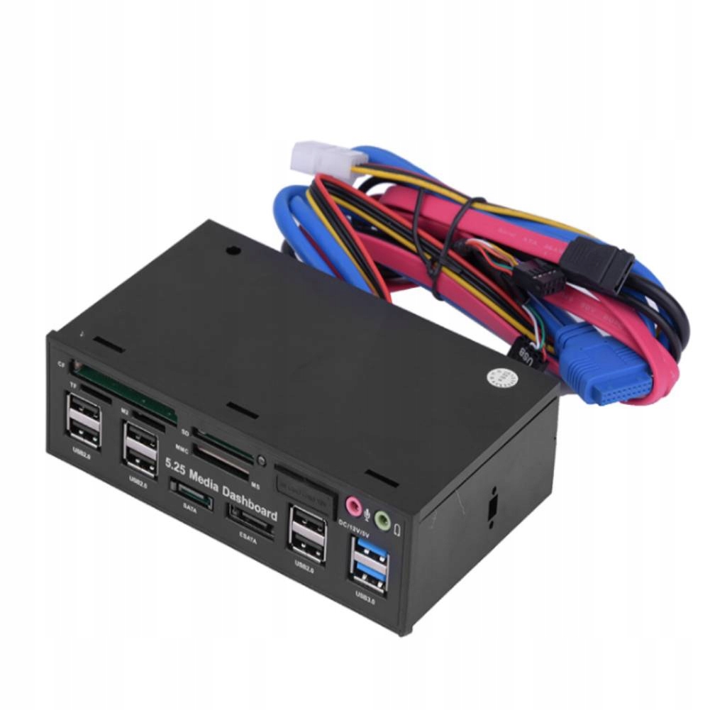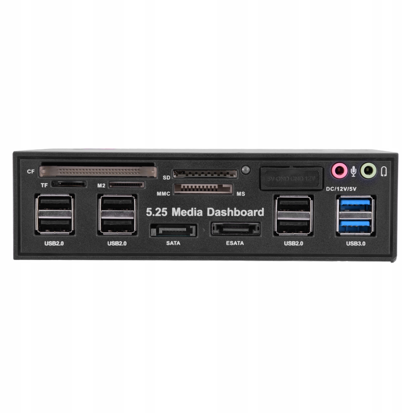 Panel przedni o przekątnej 5,25 cala, koncentrator USB3.0/2.0, czytnik kart eSATA SATA Audio
