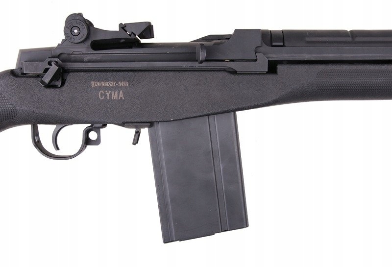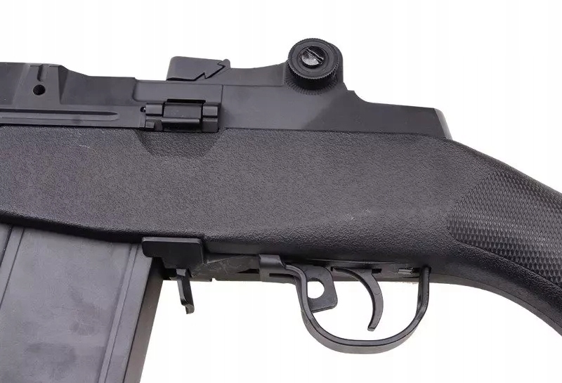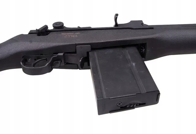 Replika karabinu CM032 Replika karabinu CM032 wykonana jest z metalu i tworzywa sztucznego. Korpus i niektóre części wewnętrzne wykonane są z tworzywa sztucznego. Elementy wykonane z metalu to nośnik rygla, żelazne przyrządy celownicze, stopa kolby i lufa wewnętrzna. Korpus repliki wyposażony jest w ładną fakturę materiału, który jest miły w dotyku i w żłobieniach dzięki czemu zyskujemy pewny chwyt nawet wtedy, gdy nasze dłonie są brudne lub mokre. Żelazne przyrządy celownicze składają się z otwartych, dobrze widocznych przednich przyrządów celowniczych i tylnego celownika, który jest regulowany zarówno w poziomie, jak i w pionie. Replika CM032 posiada metalowy nośnik rygla, którego przeładowanie dźwięku może być miłą niespodzianką dla każdego airsoftowca. Wewnątrz repliki znajduje się standardowy gearbox V.7 pozwalający na zapewnienie pół i pełnego automatycznego ognia. Dzięki długiej lufie replika ma duży zasięg i koncentrację. Dodatkowo model CM032 jest świetną bazą do repliki karabinu snajperskiego. W skład zestawu wchodzi: - replika - magazynek - zawiesie taktyczne Kolor: Czarny Długość produktu [cm]: 120 Waga produktu [g]: 3480 Zasilanie: Elektryczne Materiał: Metal,Tworzywo sztuczne Prędkość muzgi [FPS]: 340 Tryb ognia: Full-auto, Semi-auto Wersja skrzyni biegów: Skrzynia biegów v7 Hop-Up: Tak Długość lufy wewnętrznej [mm]: 540 Długość minimalna [mm]: 1200 Pojemność magazynka [szt. ]: 500 MOSFET/ETU: Nie