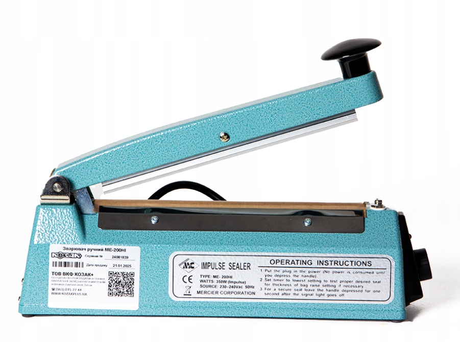 Elektryczna zgrzewarka pakietów ME-200NI - ręczna stołowa zgrzewarka folii polimerowych. Zgrzewarka przeznaczona jest do zgrzewania opakowań i worków (formowania szwu) z różnych folii - polietylenowych, polipropylenowych, a także papierów laminowanych w procesie produkcji różnorodnych wyrobów z materiałów zgrzewalnych do pakowania towarów.