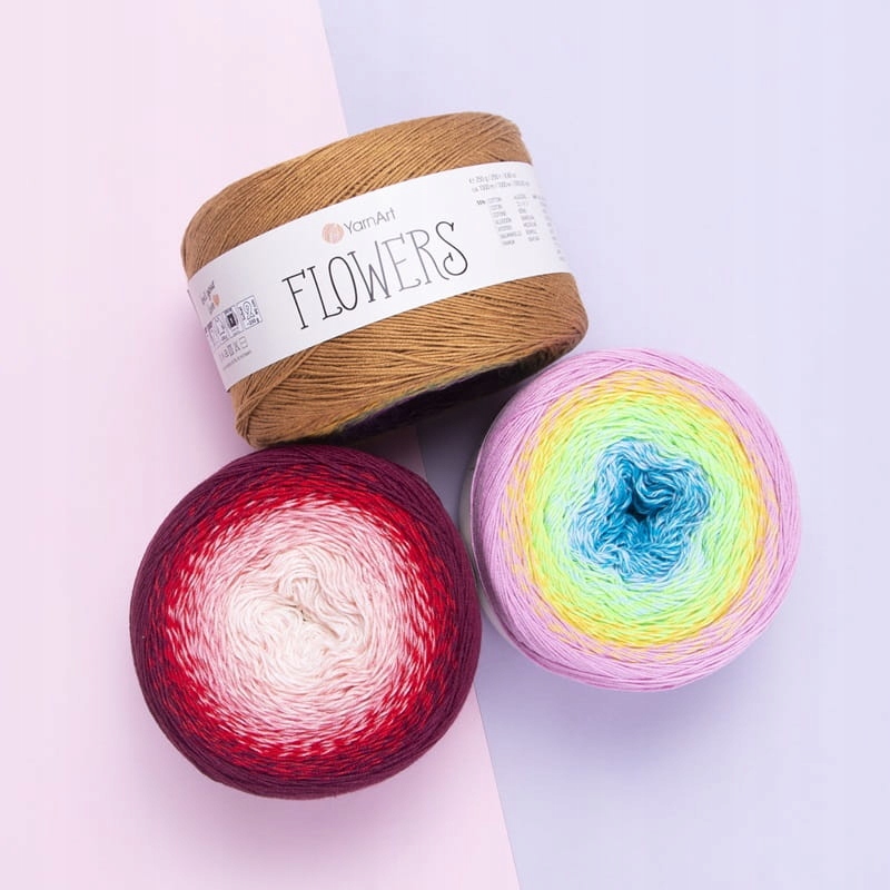 Włóczka Flowers to delikatna mieszanka bawełny i akrylu. Jest miękka, przyjemna w dotyku i wydajna . Idealna na wyroby na sezon wiosenno-letni. Chusty, szale ,spódniczki, sukienki to rzeczy ,które możemy wykonać z naszej włóczki . Płynne przejścia kolorów tworzą niepowtarzalne zestawienia kolorystyczne . Producent pomyślał , również o jednokolorowych solidach w postaci modelu Flowers Unicolor. Przykład połączenia czarnego Unicolor z Flowers kol 315 , na zdjęciu spódniczki.