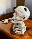 Wykonana z żeliwa przedstawiająca kościotrupa . Po naciśnięciu dźwigni podnosi dłoń, na której kładzie się monetę a on wrzuca do oka, które automatycznie się otwierają - stan bardzo dobry .