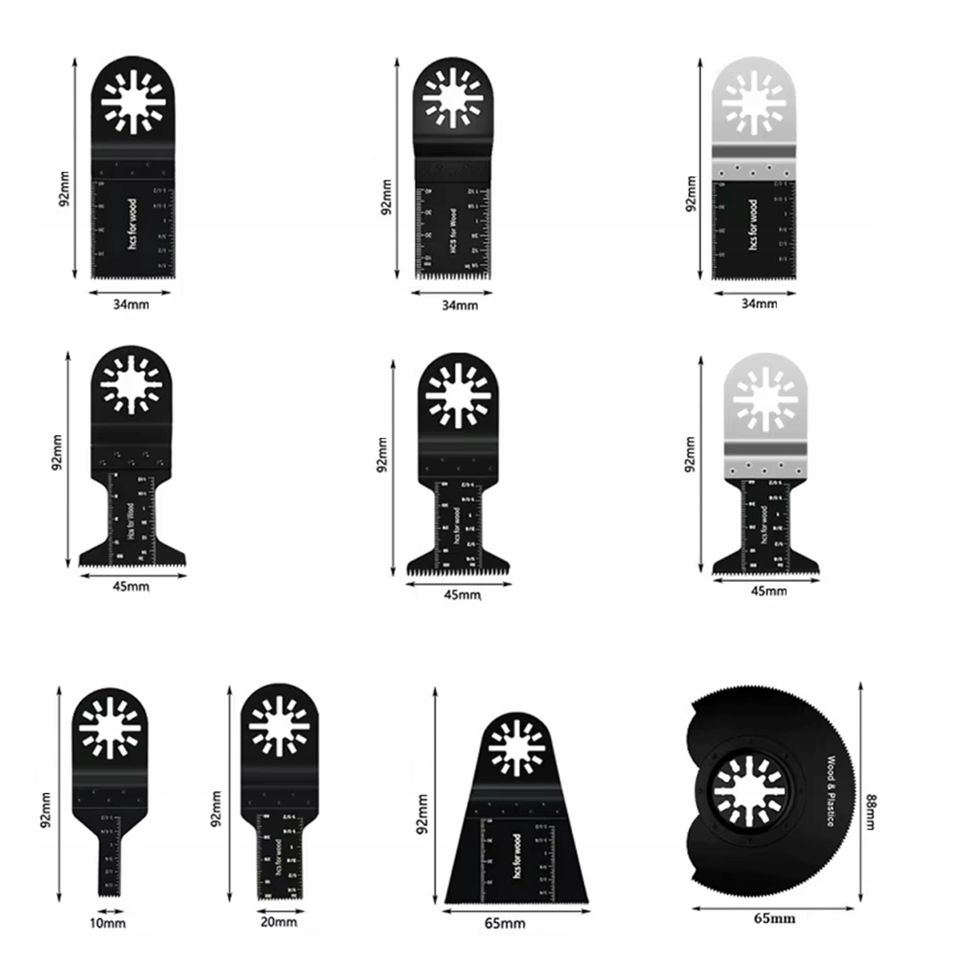Ten kompletny zestaw 12 ostrzy oscylacyjnych to niezawodne rozwiązanie do drewna, plastiku i innych materiałów. Dzięki uniwersalnemu mocowaniu pasują do większości multinarzędzi dostępnych na rynku.
