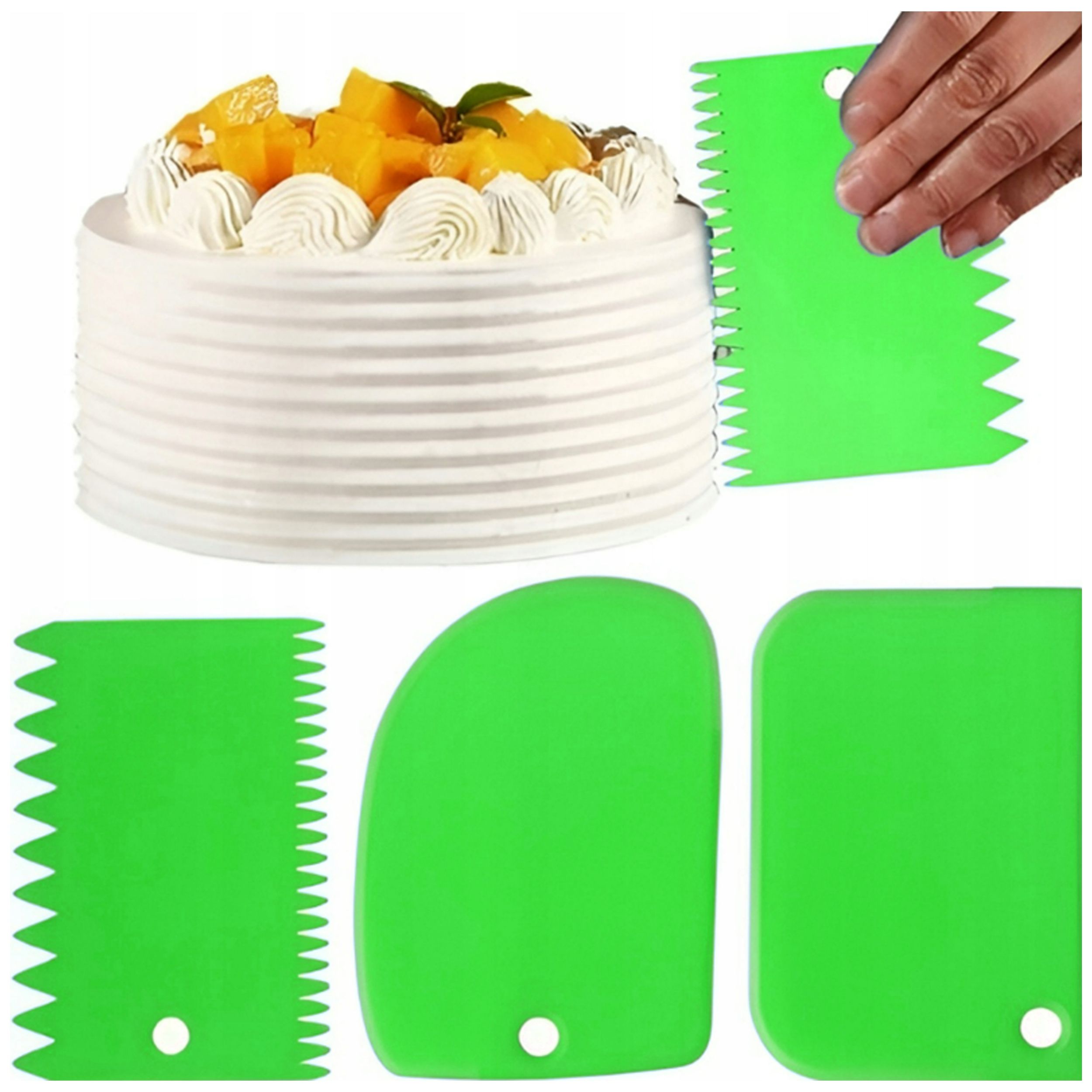 ✅ 3 różne wykończenia – gładkie krawędzie do równomiernego rozprowadzania kremu, ząbkowane i zaokrąglone do tworzenia efektownych wzorów.