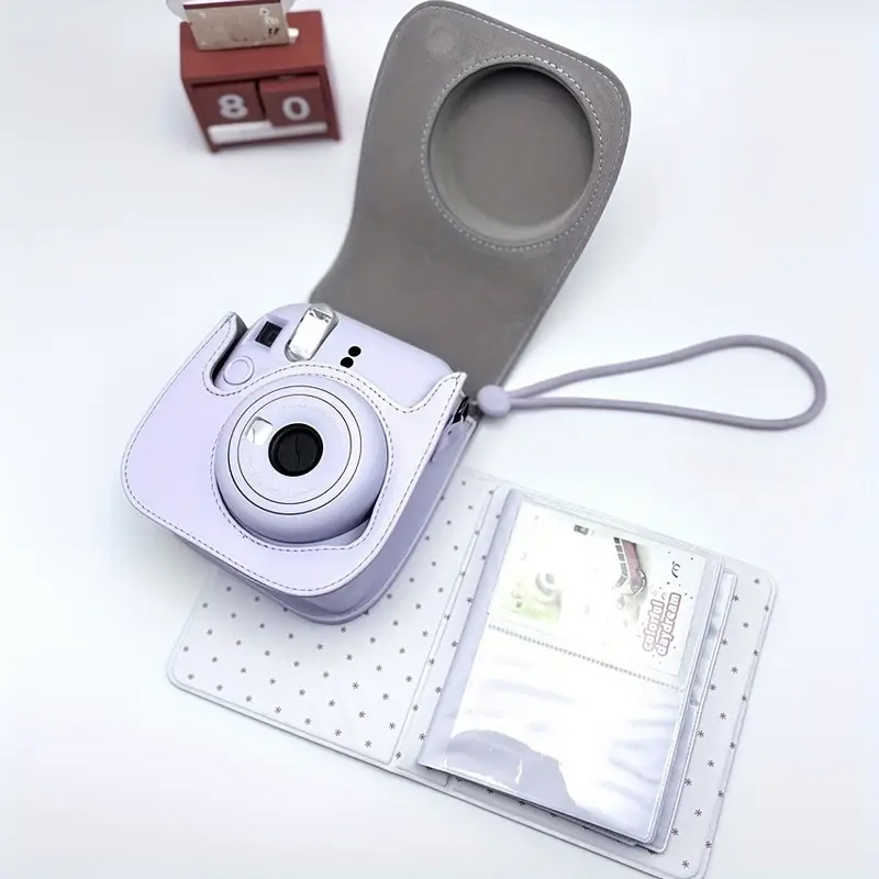 Elegancki futerał z ekoskóry w kolorze jasnofioletowym został zaprojektowany specjalnie do Instax Mini 12. Łączy w sobie styl, funkcjonalność i ochronę, dzięki czemu Twój aparat zawsze będzie bezpieczny i gotowy do robienia zdjęć – w domu, w podróży i na spotkaniach z przyjaciółmi.