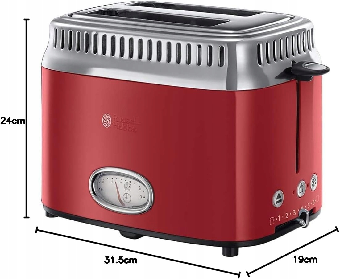 Toster 2-kromkowy o mocy 1300 W w czerwonym wykończeniu łączy klasyczny look z nowoczesną funkcjonalnością, zapewniając ekspresowe opiekanie nawet do 65% szybciej. Dzięki temu w kilka chwil serwujesz chrupiące tosty na idealny start dnia. ⚡⏱️❤️🔥