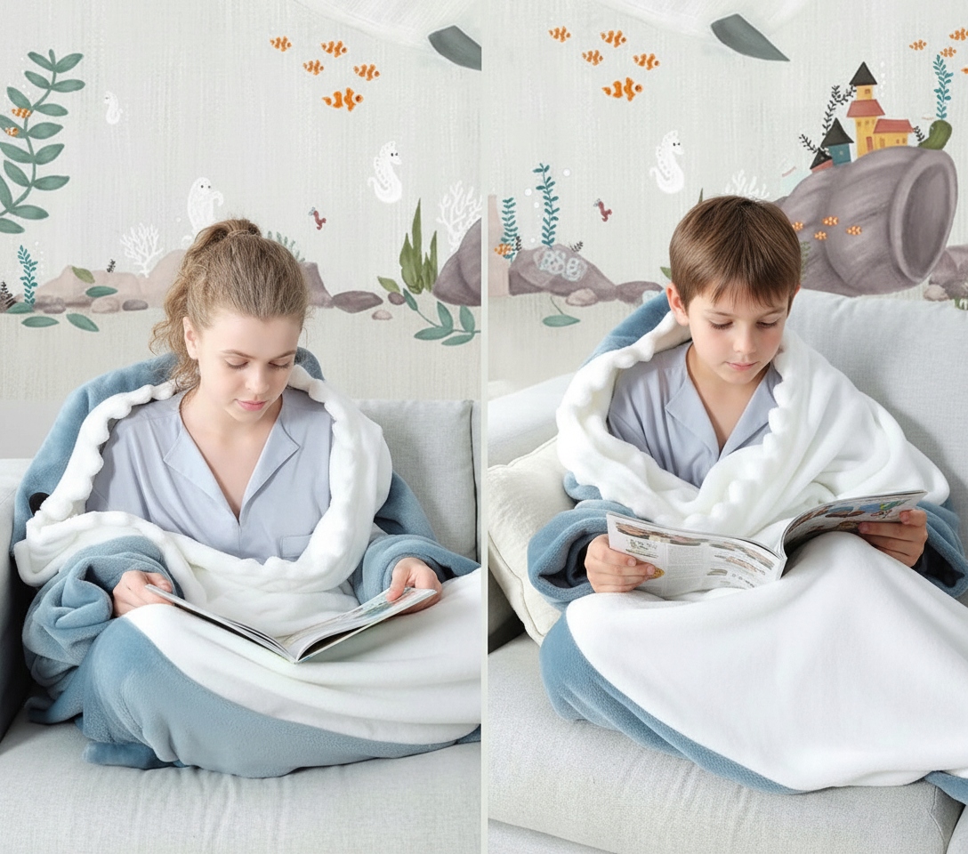 ✅Kostium w formie rekina zapewnia niezwykłe ciepło i wygodę, dzięki czemu chłodne wieczory staną się czystą przyjemnością. Wysokiej jakości poliester gwarantuje miękkość w dotyku i uczucie przyjemnego otulenia. Śpiwór idealnie sprawdzi się podczas oglądania filmów, czytania książek czy odpoczynku po długim dniu. To nie tylko gadżet – to funkcjonalne połączenie koca i piżamy, które pokocha każdy domator.