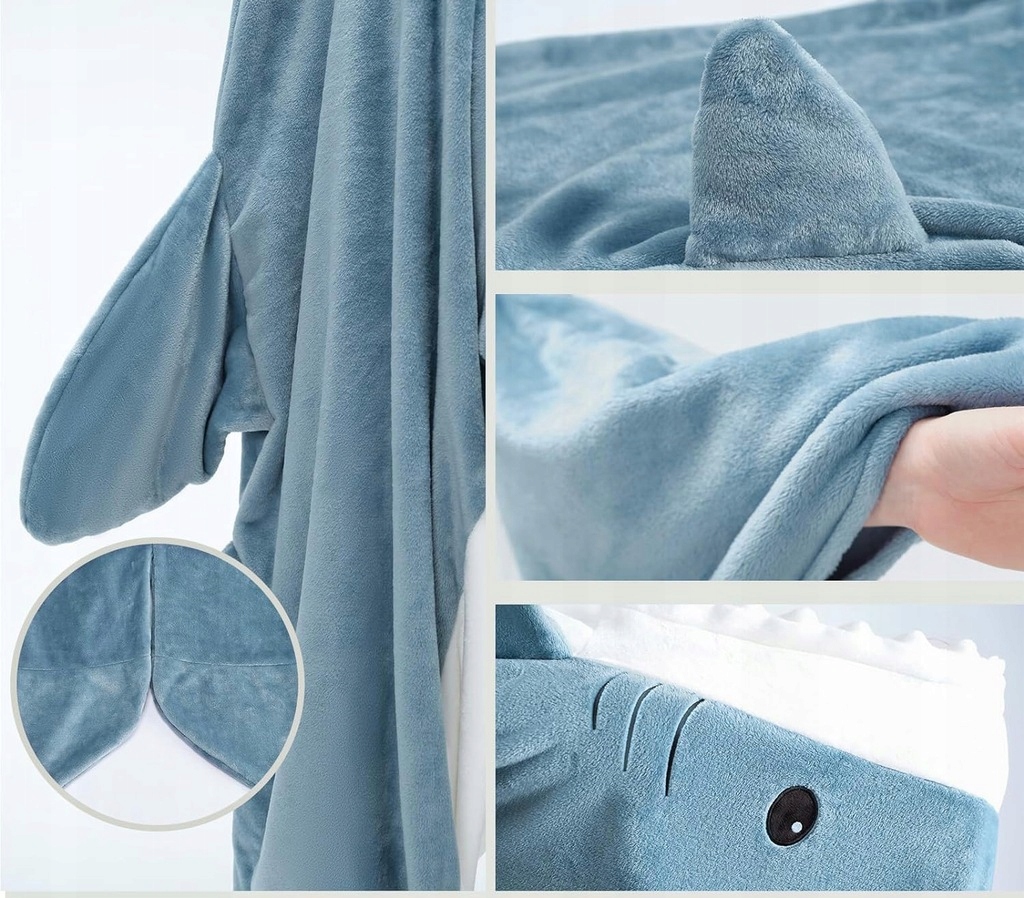 ✅Ten niezwykły koc-śpiwór w kształcie rekina łączy w sobie komfort, zabawny wygląd i praktyczność. To idealne rozwiązanie na chłodne wieczory, kiedy chcesz otulić się ciepłem i jednocześnie poczuć odrobinę humoru. Dzięki wyjątkowej formie rekina, śpiwór staje się nie tylko elementem relaksu, ale i świetnym gadżetem poprawiającym nastrój.