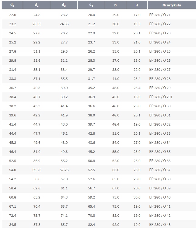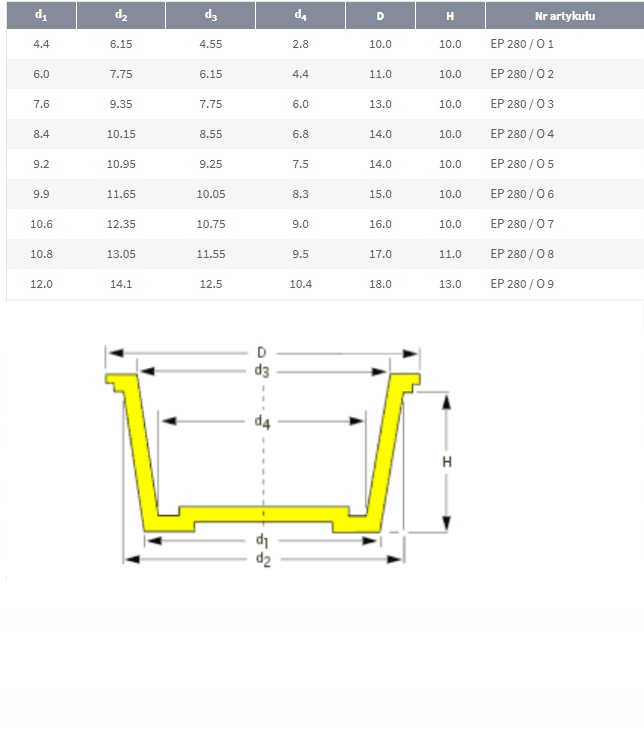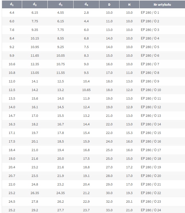 EP 280 доступен в различных размерах-см. таблицу (в мм)