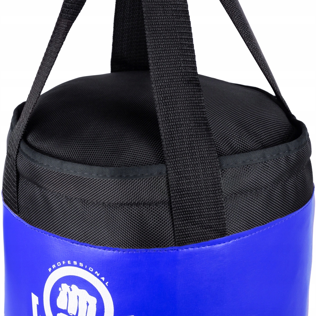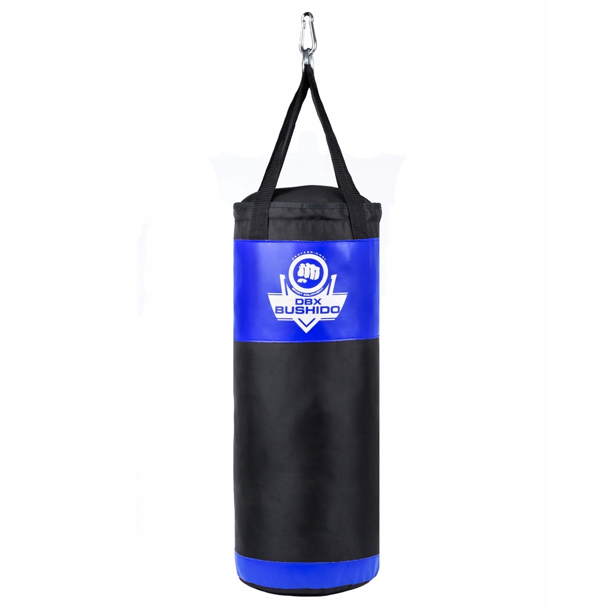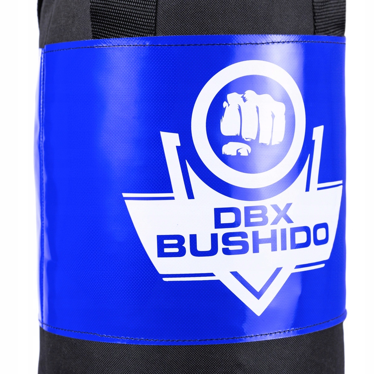 W pełni wypełniony i gotowy do treningu worek bokserski wykonany z grubego i odpornego na rozerwania materiału poliestrowego.