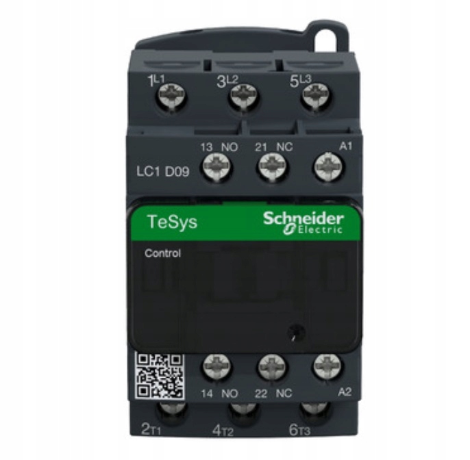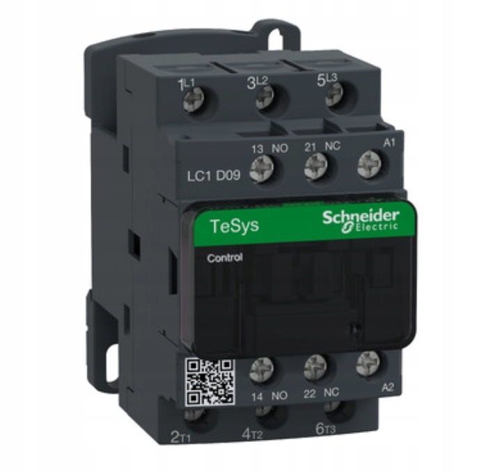 LC1D09P7 to kompaktowy 3-biegunowy stycznik TeSys D firmy Schneider Electric do zastosowań silnikowych. Znamionowy prąd 9A AC-3 4kW przy 400V, zawiera 230V 50/60Hz AC cewkę i styki pomocnicze 1NO + 1NC. Może być stosowany w aplikacjach bezpieczeństwa.