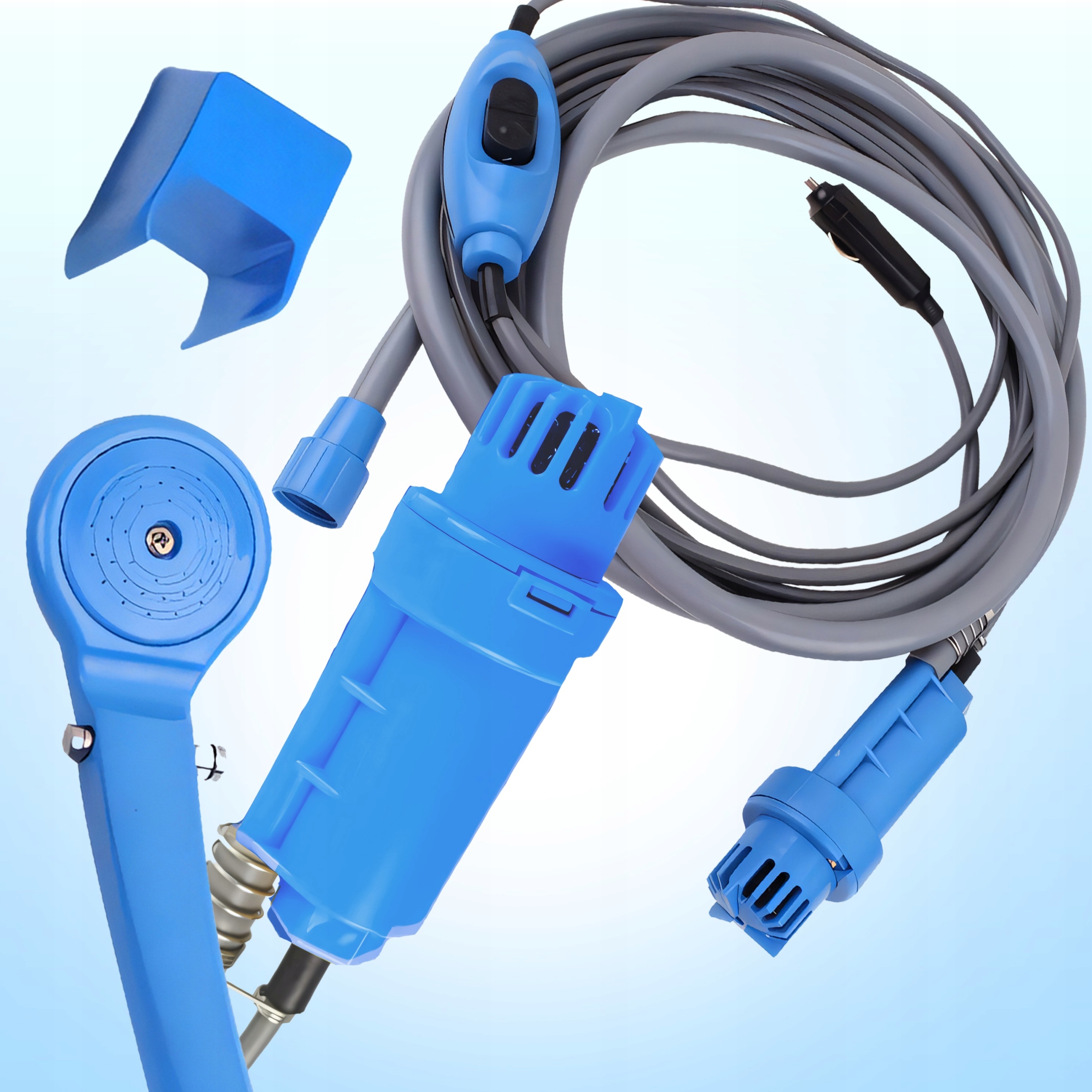 ✂️SŁUCHAWKA PRYSZNICOWA▶️WĄŻ ZASILAJĄCY -2M✖️KABEL ZASILAJĄCY - 5M〰️POMPA Z FILTREM✳️WYŁĄCZNIK✴️ZBIORNIK NA WODĘ⌨️AKCESORIA MONTAŻOWE☁️ZASILANIE WTYCZKĄ SAMOCHODOWĄ♟️