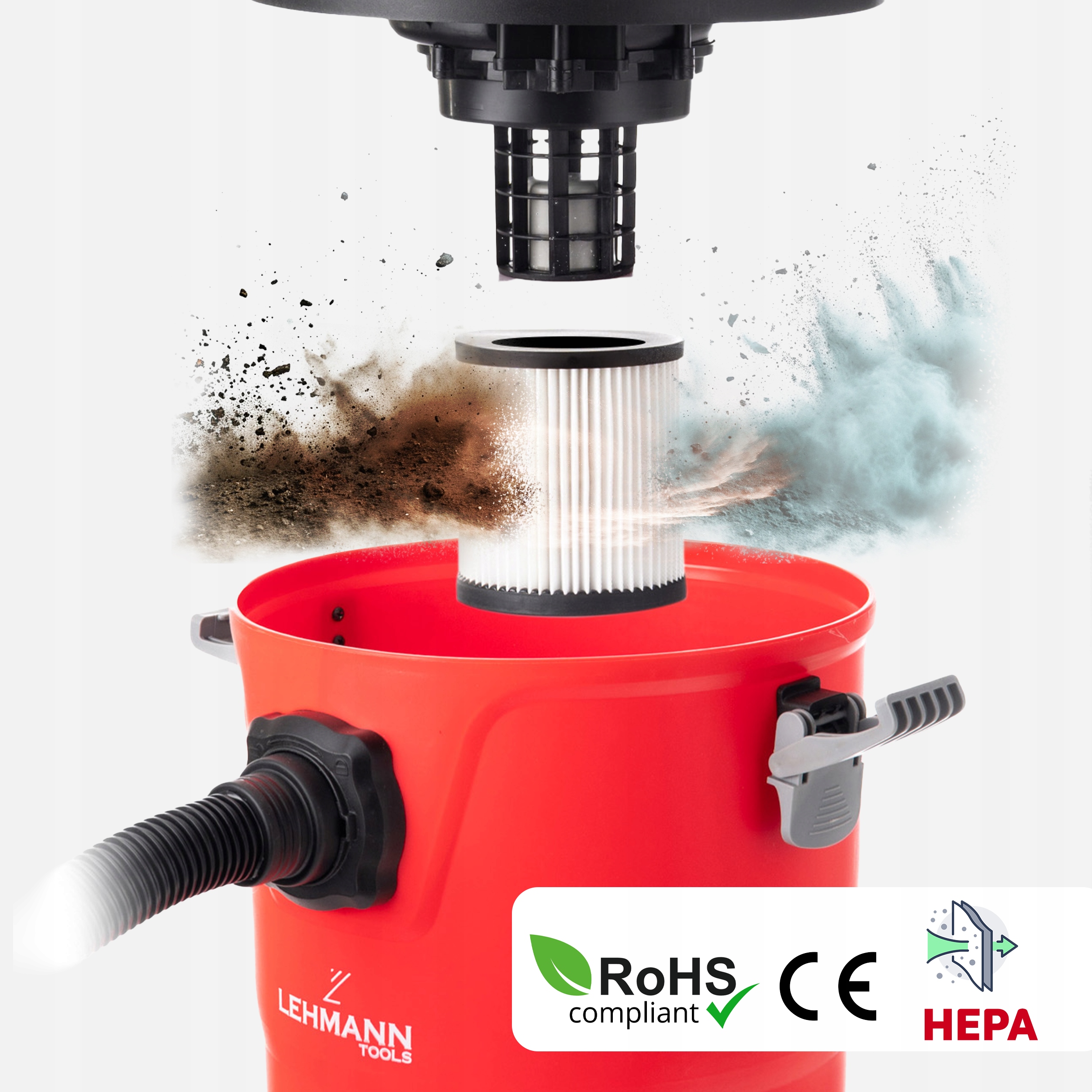 Odkurzacz Lehmann efektywnie wciąga wodę dzięki zastosowaniu specjalnego filtra piankowego, który chroni silnik podczas pracy na mokro. Do zbierania suchych zanieczyszczeń służy wysokiej jakości filtr HEPA, zapewniający skuteczne oczyszczanie powietrza z drobnych cząsteczek kurzu. Oba filtry są łatwo zmywalne, co pozwala na ich wielokrotne użytkowanie i utrzymanie higieny.